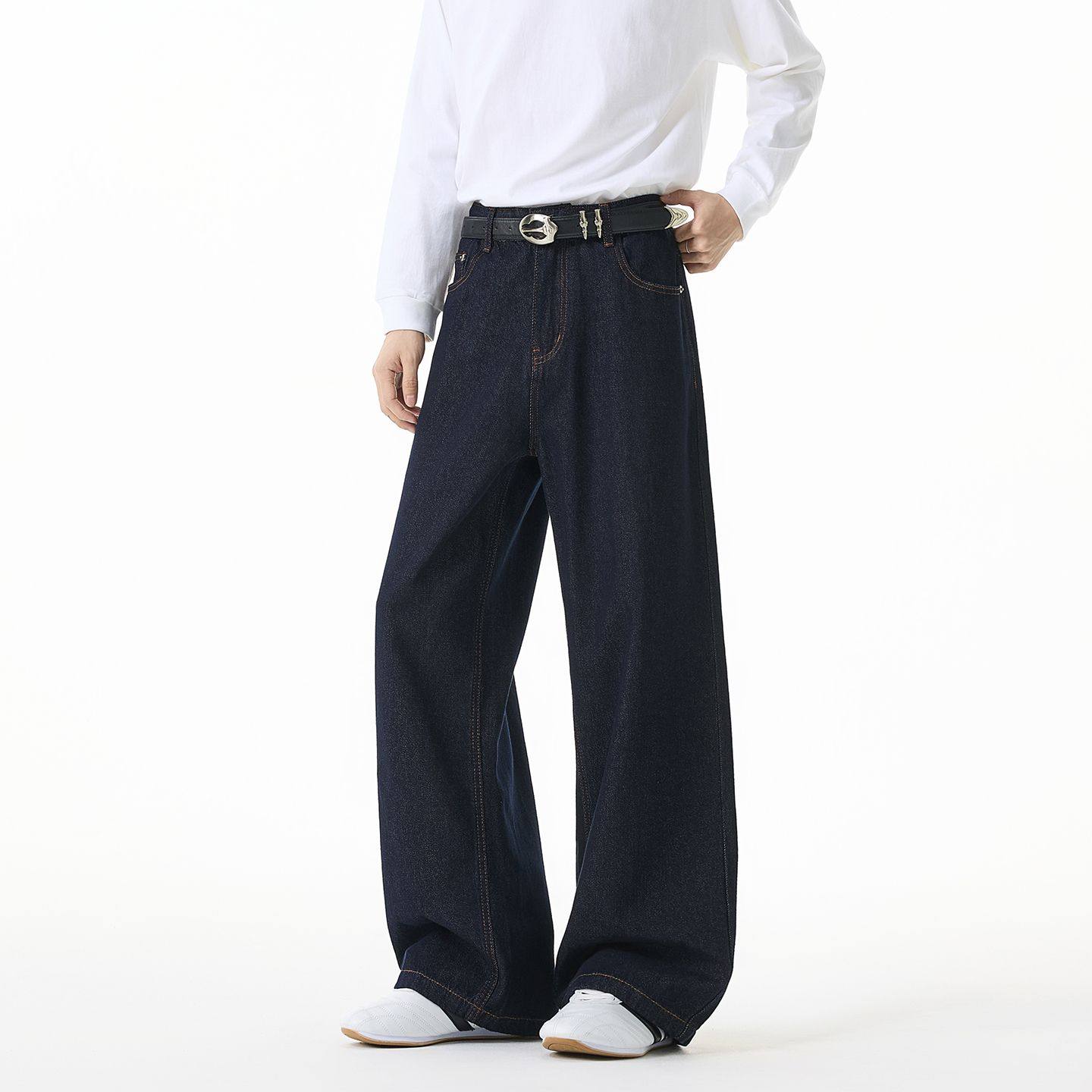加绒裤子男士高个子加长版牛仔裤男秋冬季青少年休闲阔腿长裤男生