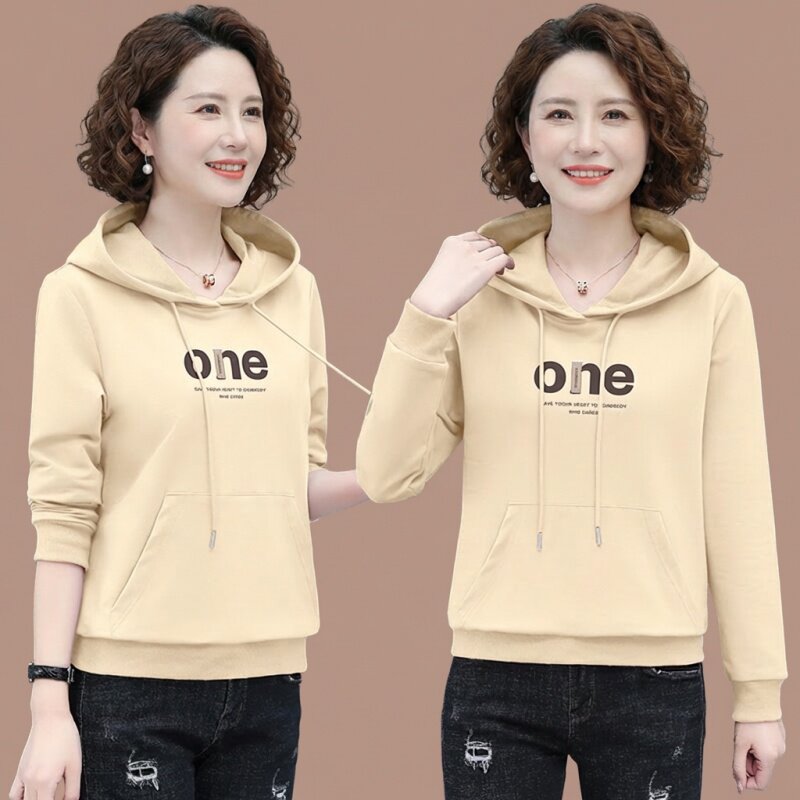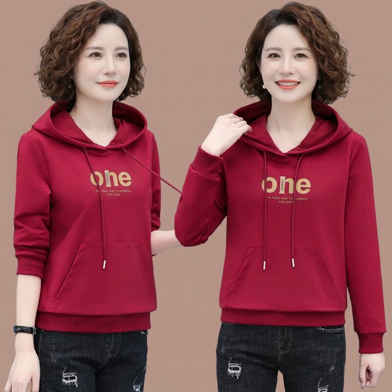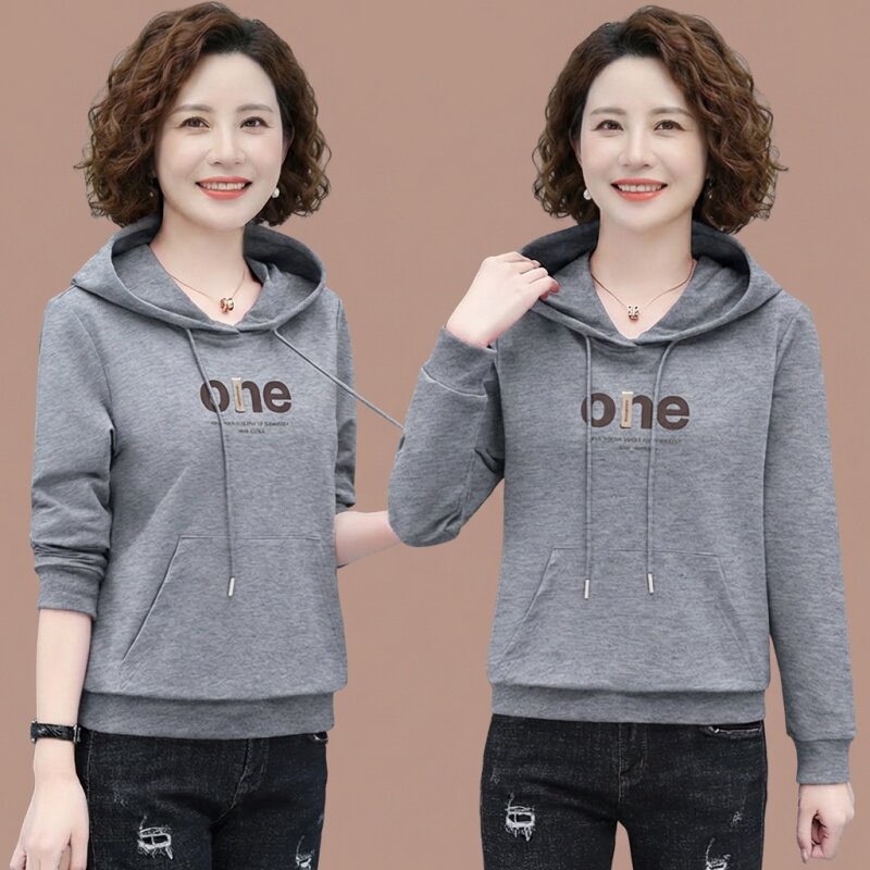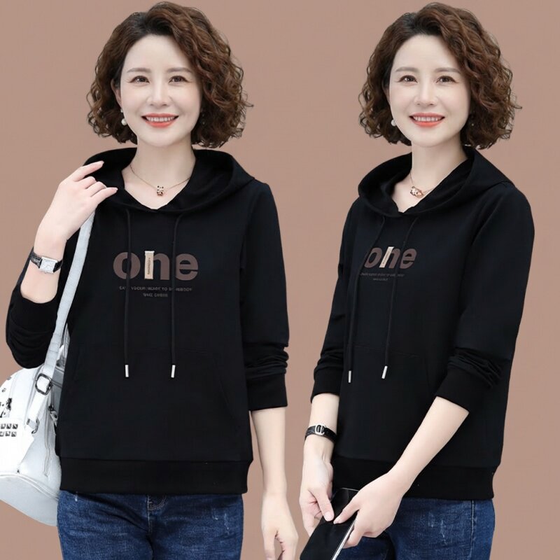 女款中年妈妈春款卫衣连帽时尚洋气50多岁春装上衣打底衫2026新款