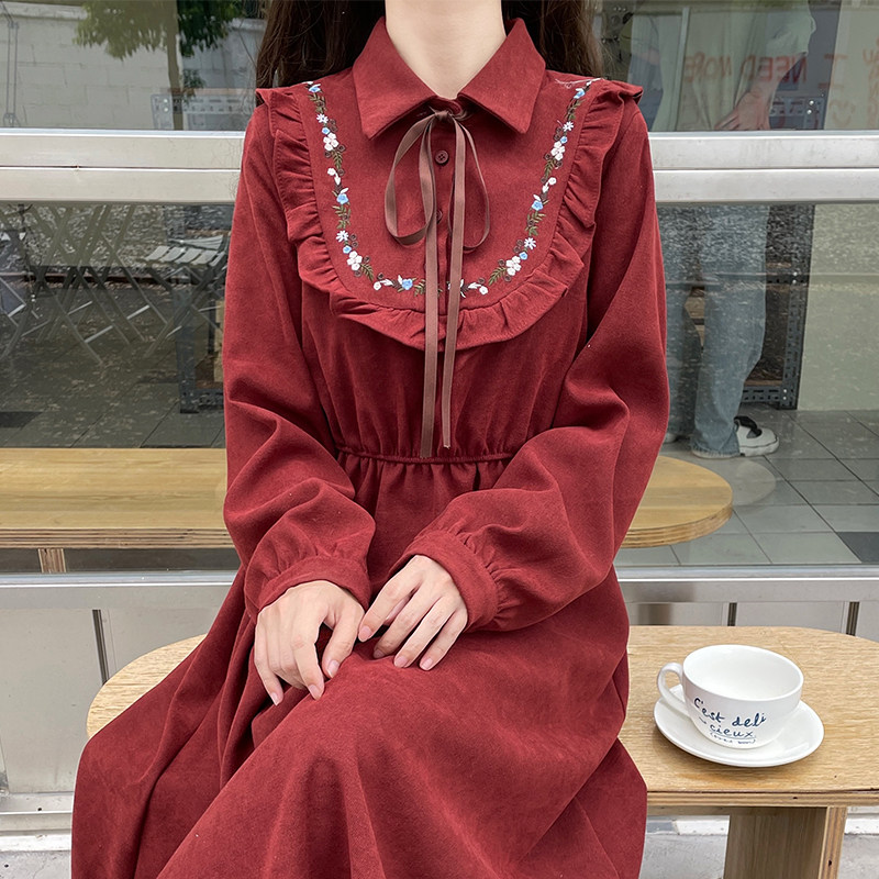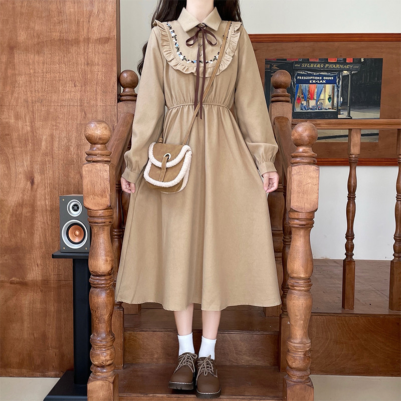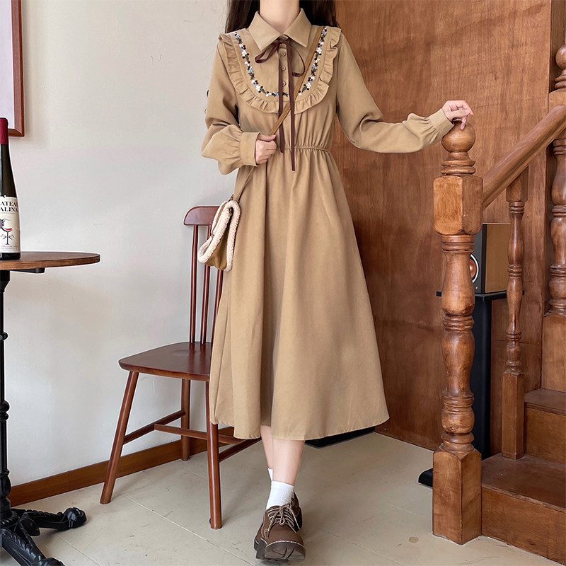 初中学生13过膝连衣裙春秋季12岁女大童长袖15少女孩休闲甜美裙子