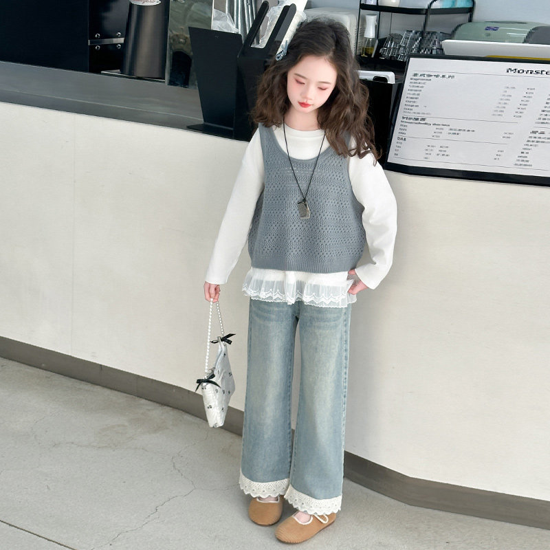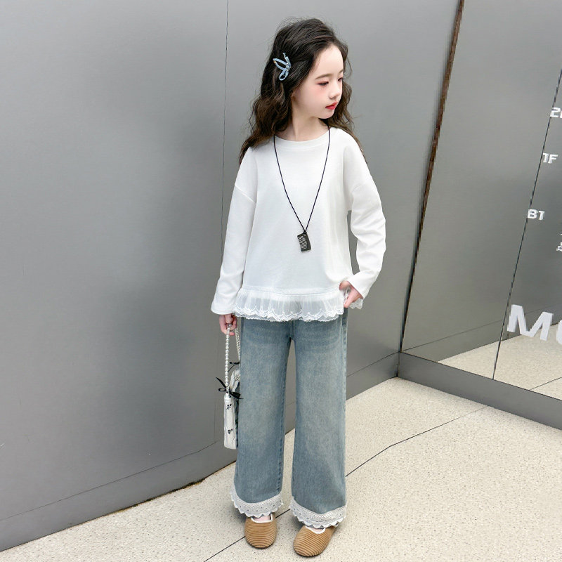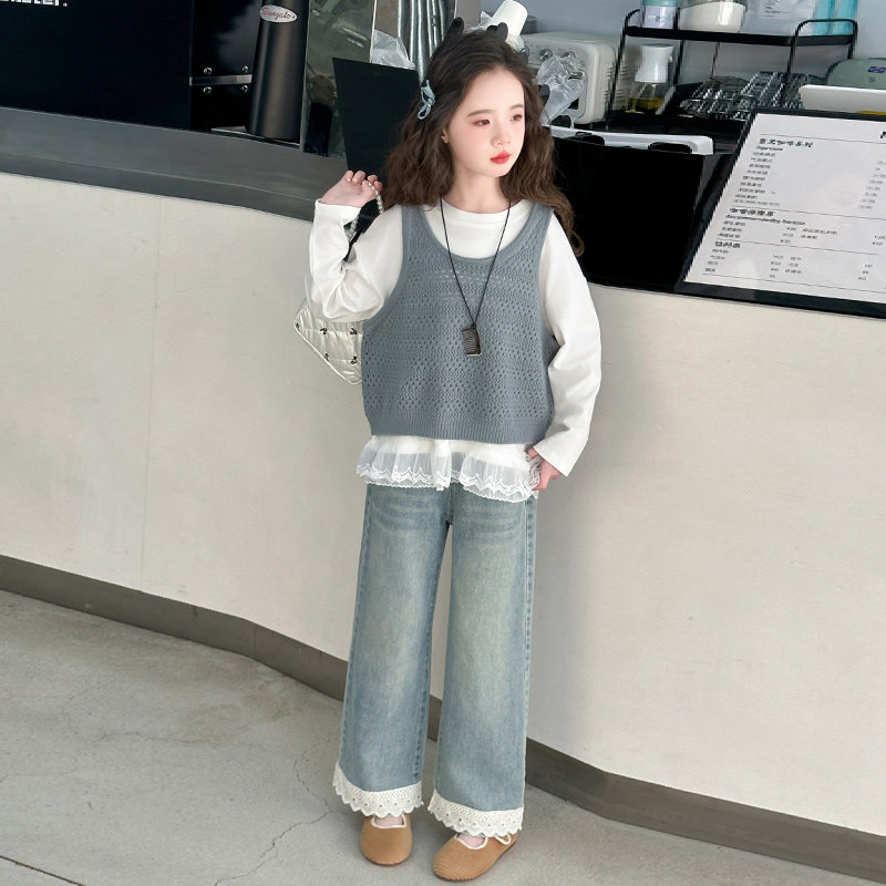 女童春秋套装2026新款时尚女大童春装休闲卫衣儿童蕾丝花边三件套