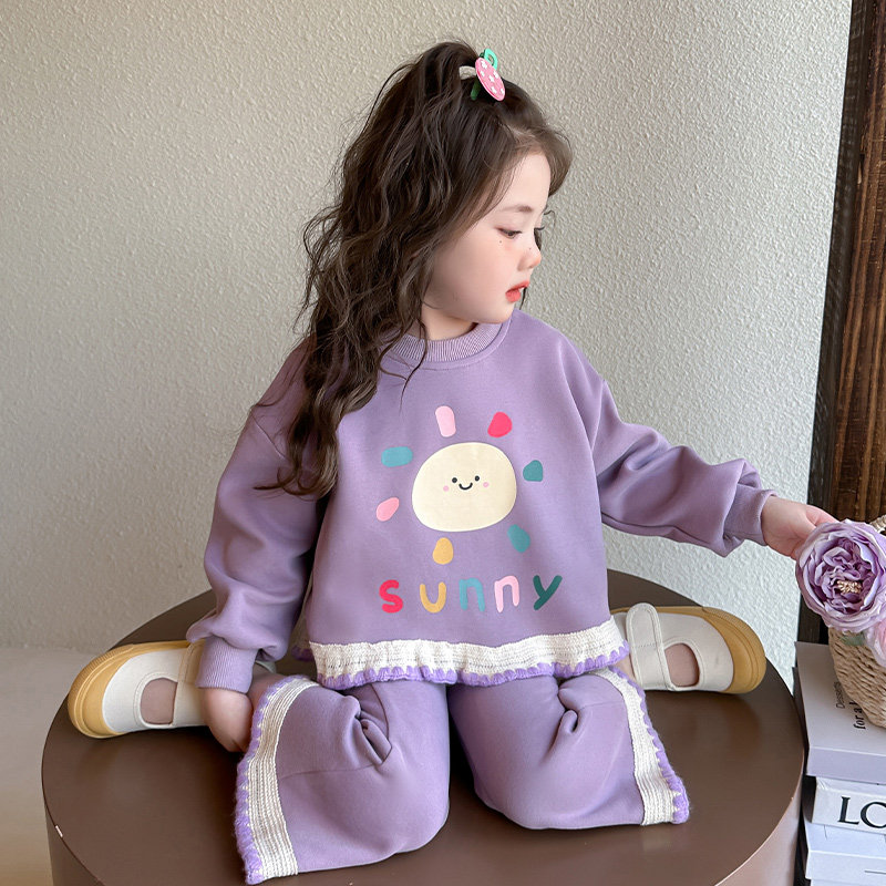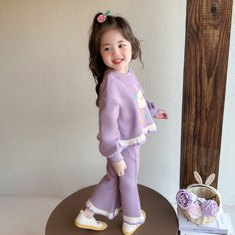 女童针织棉套装春秋款2026新款儿童洋气花边春装女宝宝时髦两件套