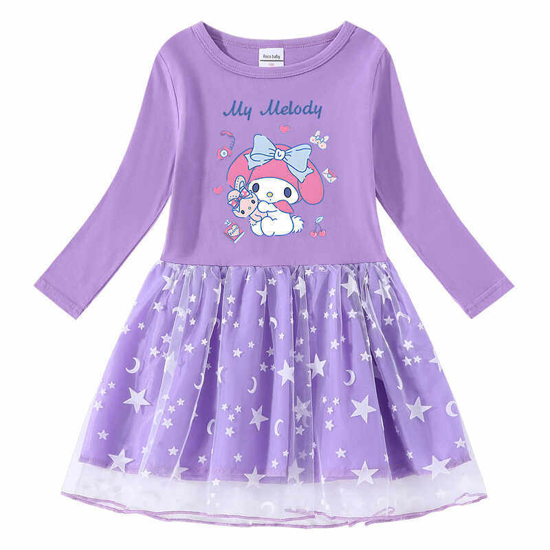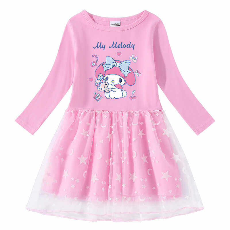 2025春秋女童连衣裙中小童2-7岁宝宝卡通星星月亮网纱长袖公主裙