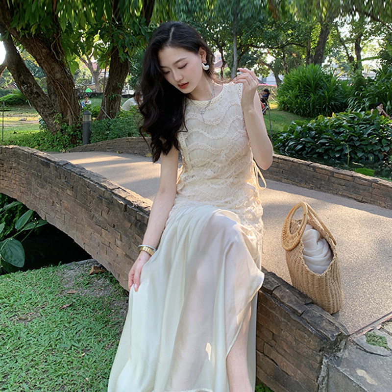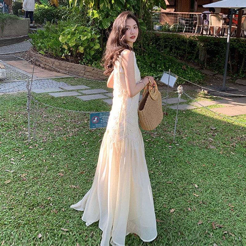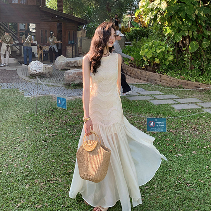 白色无袖收腰长裙2025夏季新款法式高级感连衣裙气质轻奢裙子女装