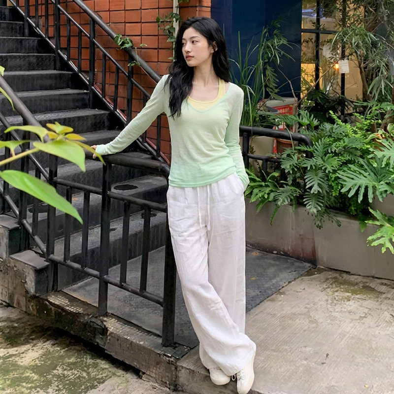MtorSory防晒罩衫女2026新款夏季长袖t恤宽松显瘦薄荷绿上衣套装