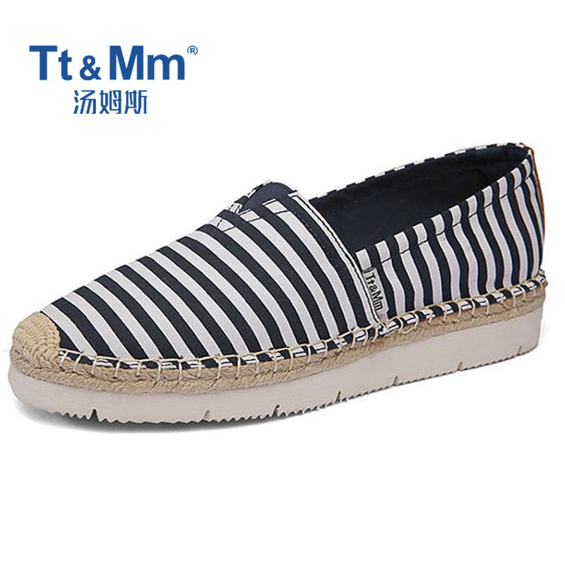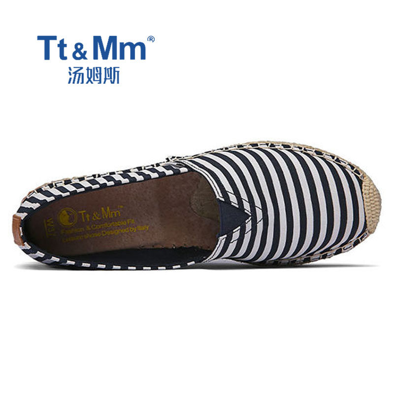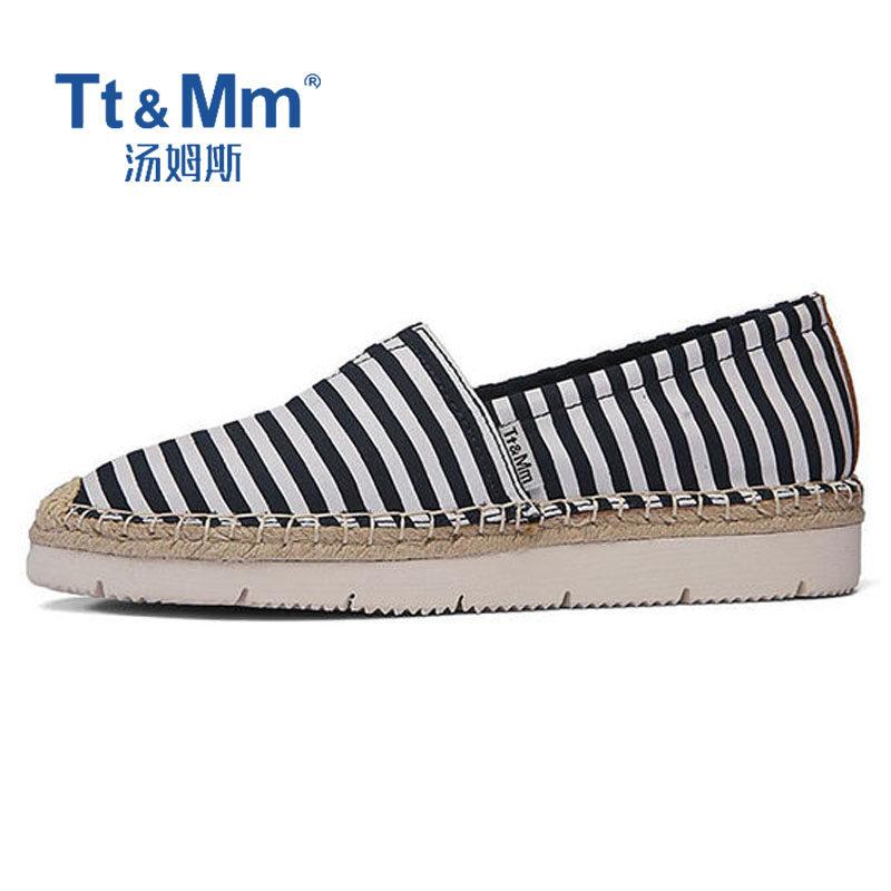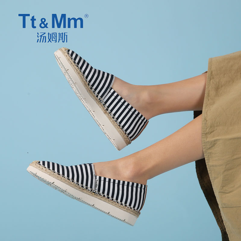 Tt&Mm/汤姆斯女鞋夏季薄款休闲鞋透气帆布鞋百搭一脚蹬厚底渔夫鞋