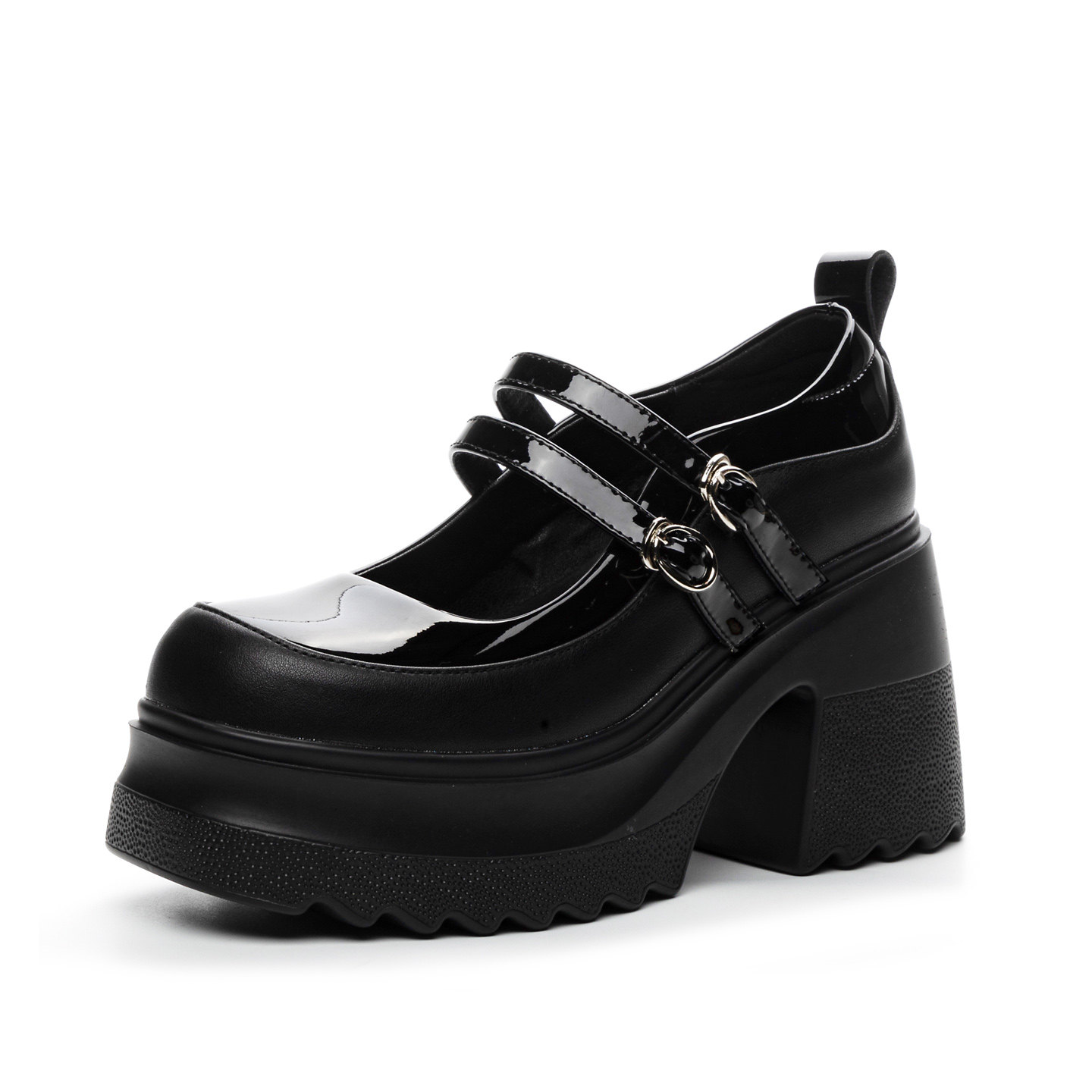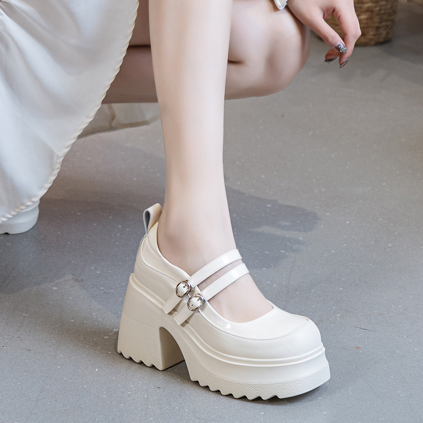 真皮白色玛丽珍小皮鞋女防水台厚底10CM粗跟单鞋配裙子内增高女鞋