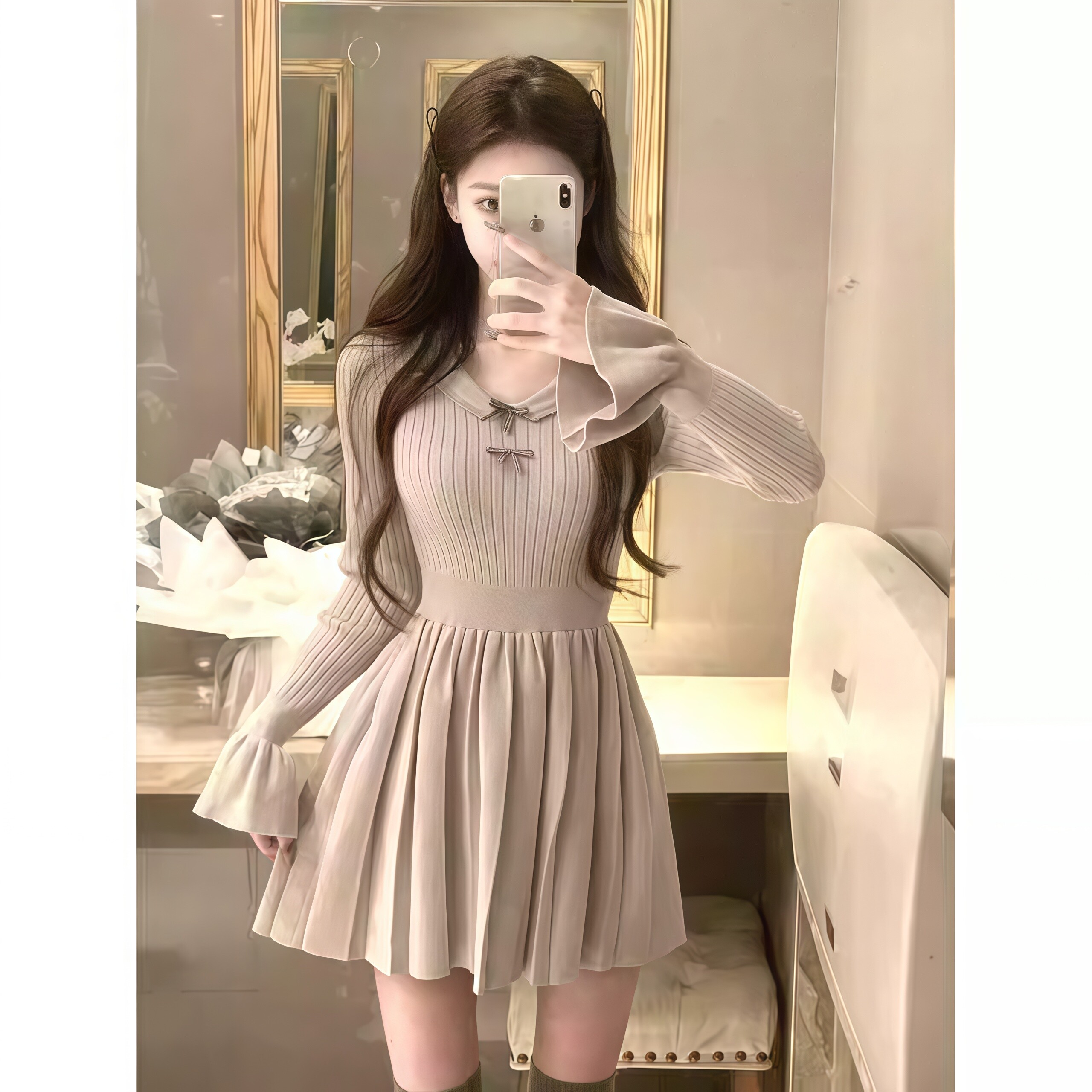 秋冬季甜美法式针织连衣裙子2026新款小个子内搭配大衣毛衣短裙女