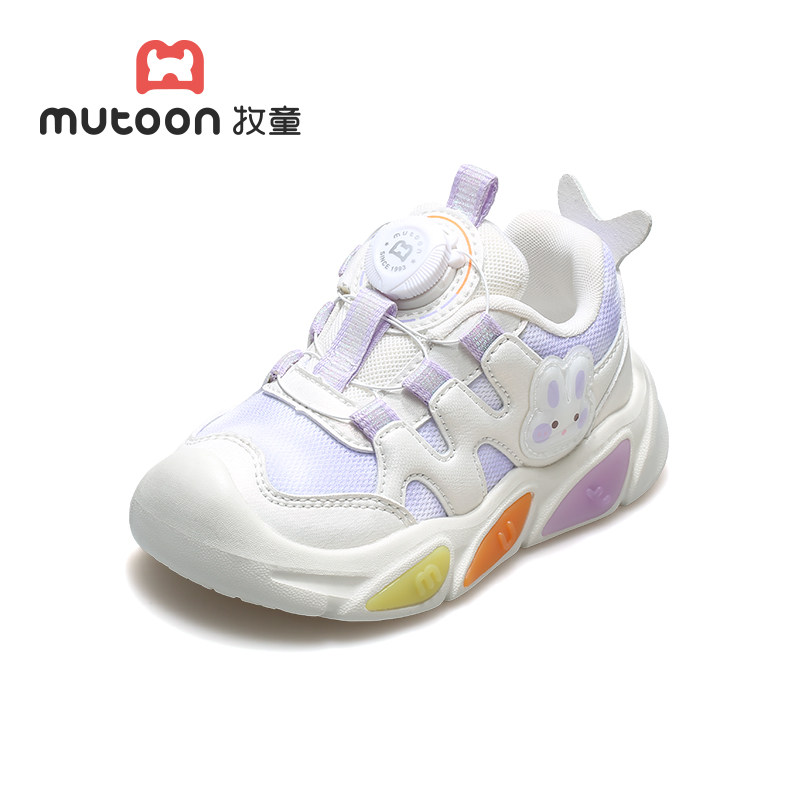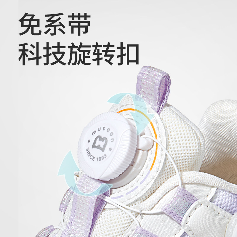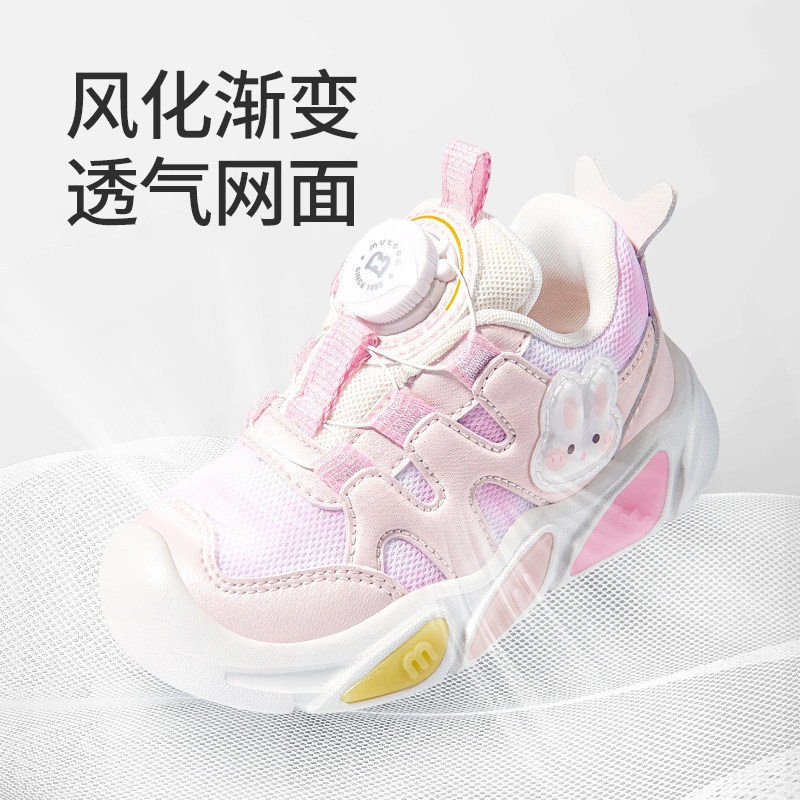 牧童原创小萌兔闪灯鞋春夏透气网面甜美女童运动鞋儿童旋转扣鞋子