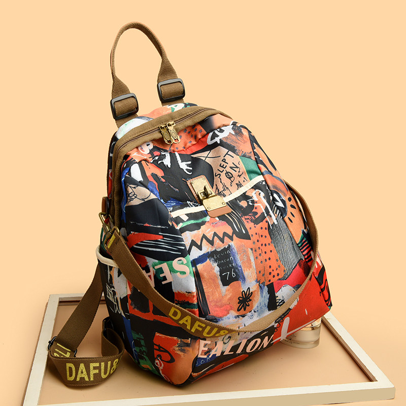 休闲双肩包时尚百搭女旅游轻便书包多功能牛津布背包大容量妈咪包