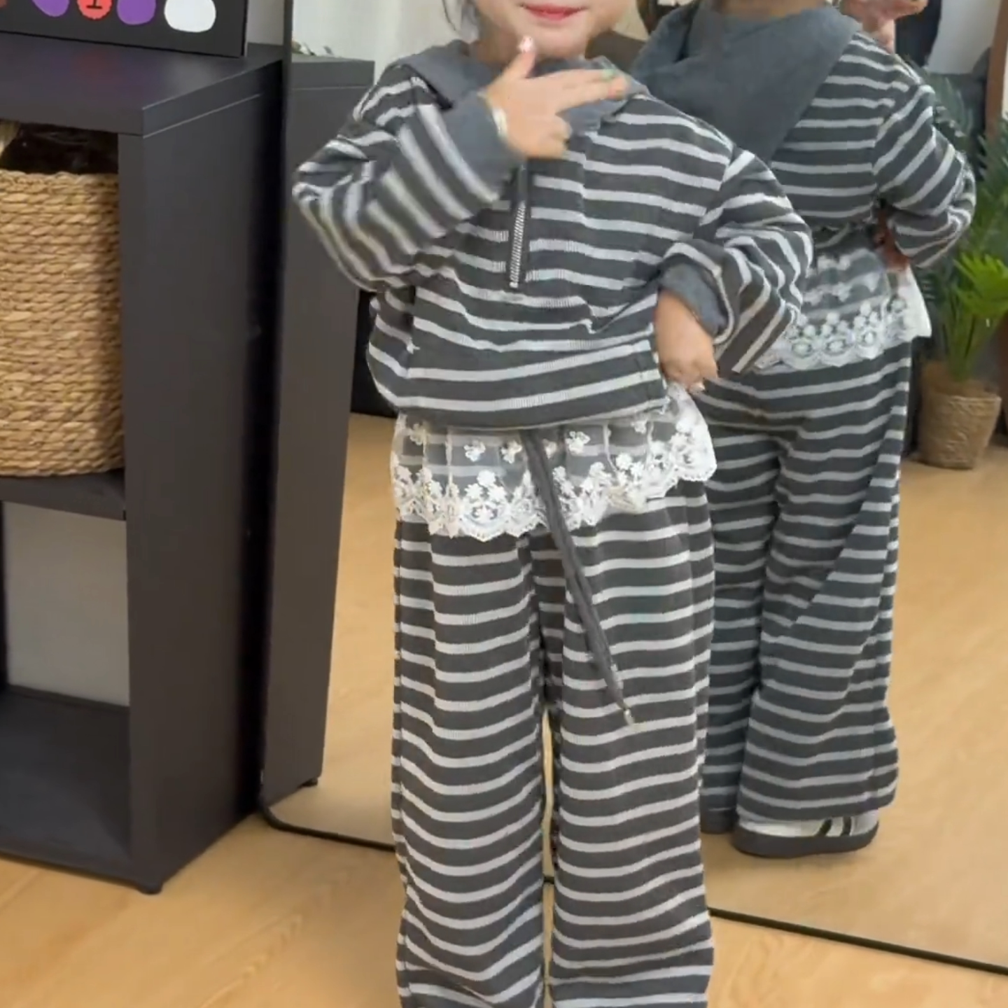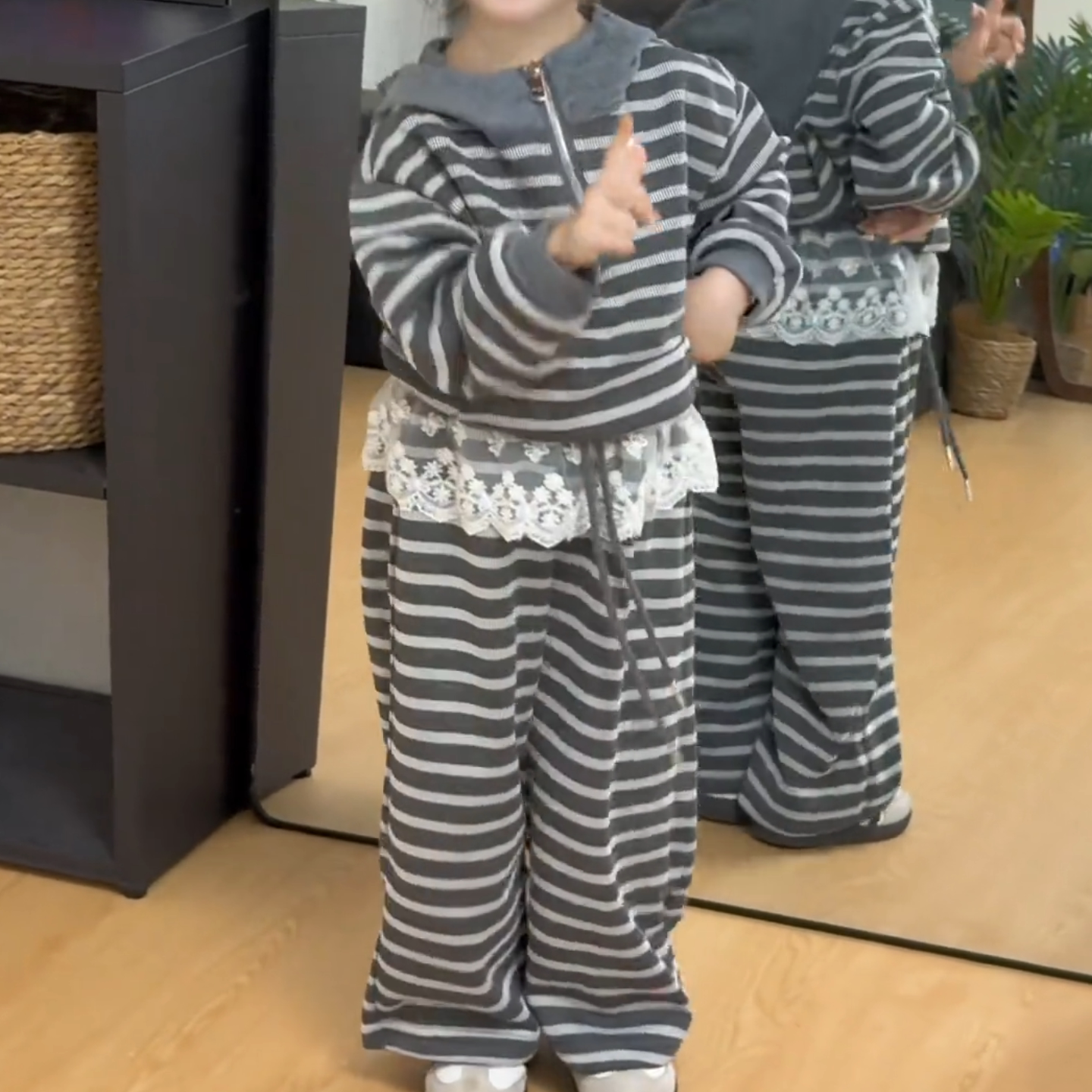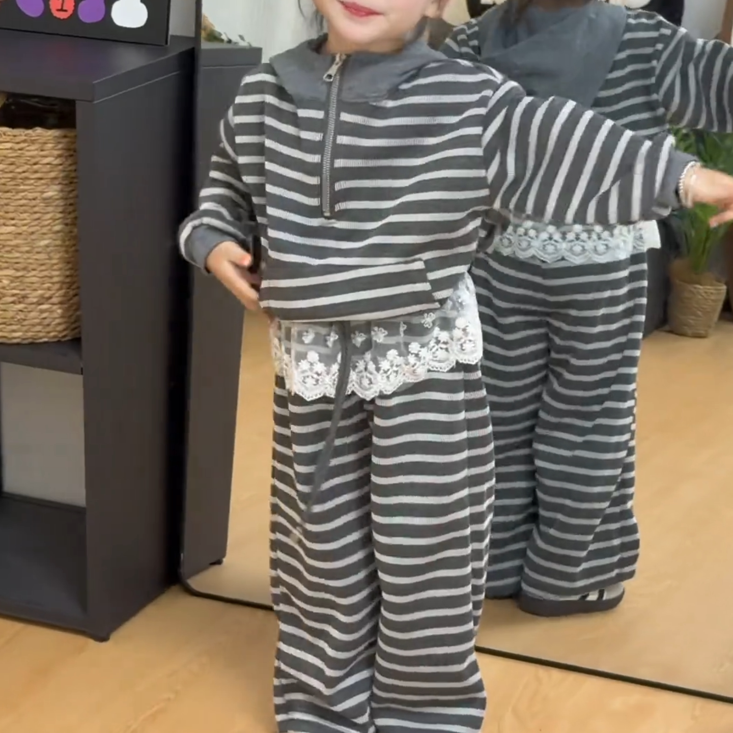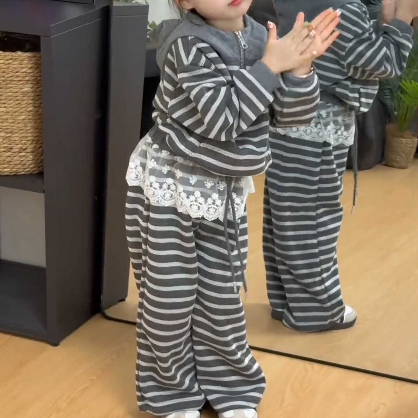 女童套装2026春秋新款中大童韩版条纹连帽卫衣阔腿裤两件套休闲潮