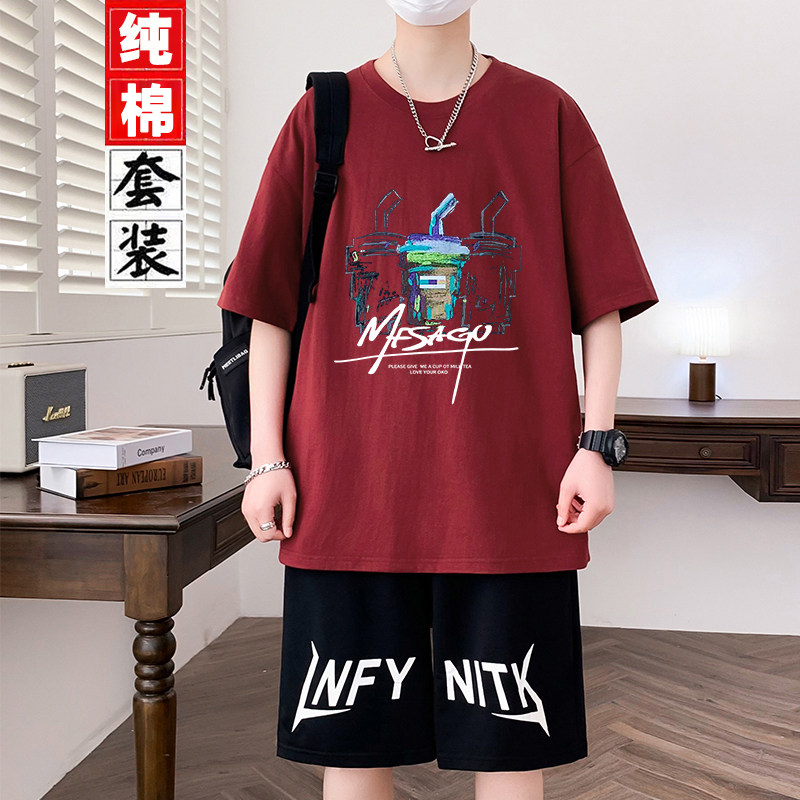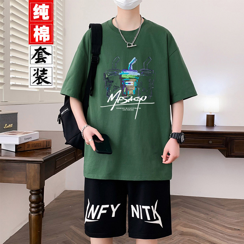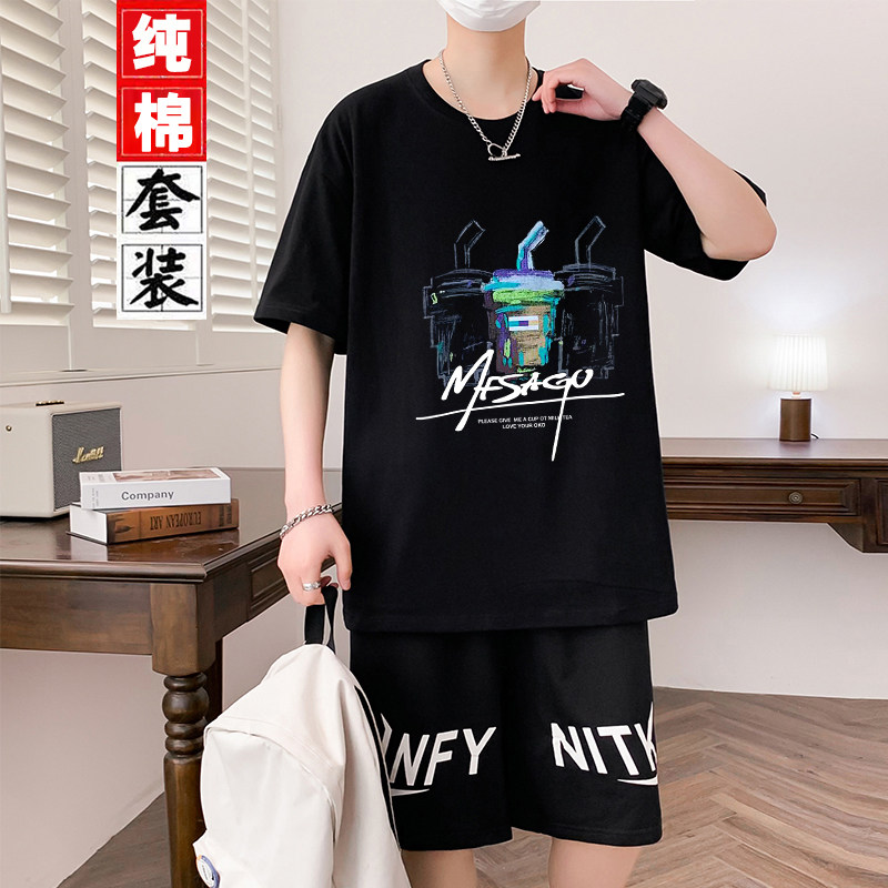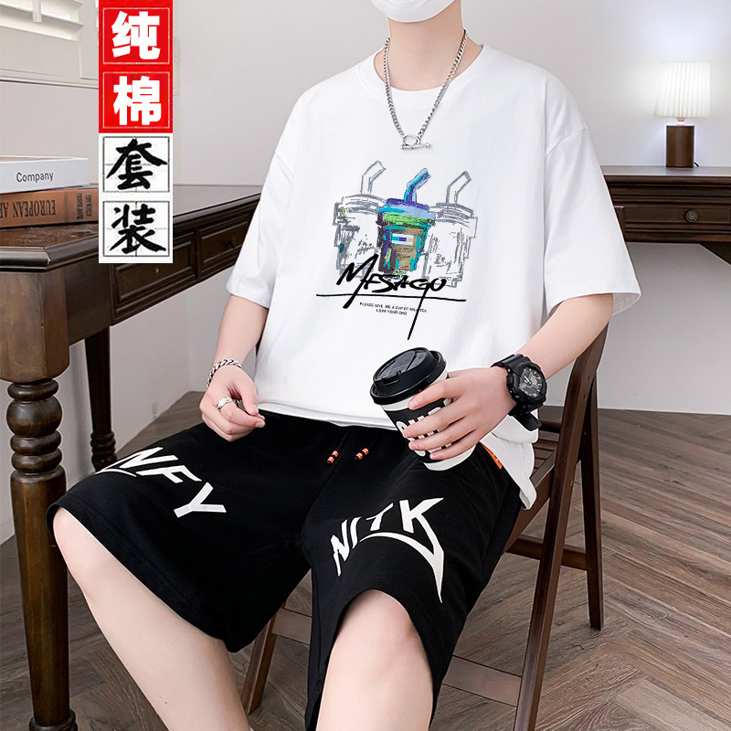 纯棉青少年短袖运动套装夏季新款t恤青少年男装帅气学生潮流套装