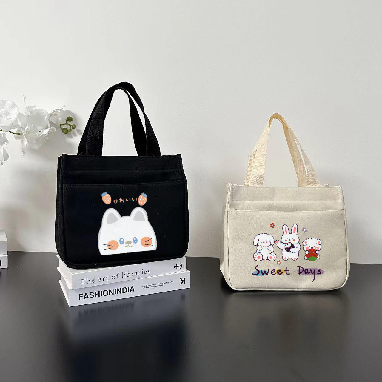 2024新款出门上班族杂物小拎包拉链洋气网红盒饭手提袋帆布女通勤