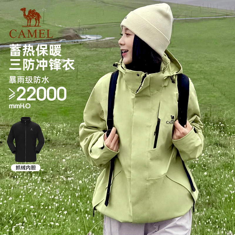 骆驼灰卡其冲锋衣女款春秋防风户外三合一保暖加厚羽绒内胆外套