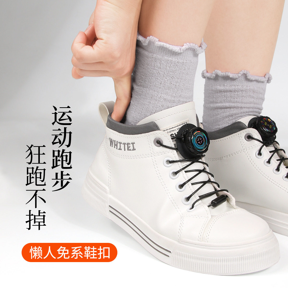 旋转纽扣懒人免系免绑运动跑鞋黑白色粗鞋带绳旋钮鞋扣固定器