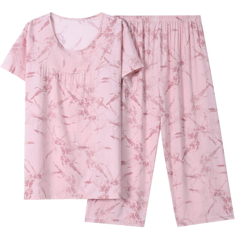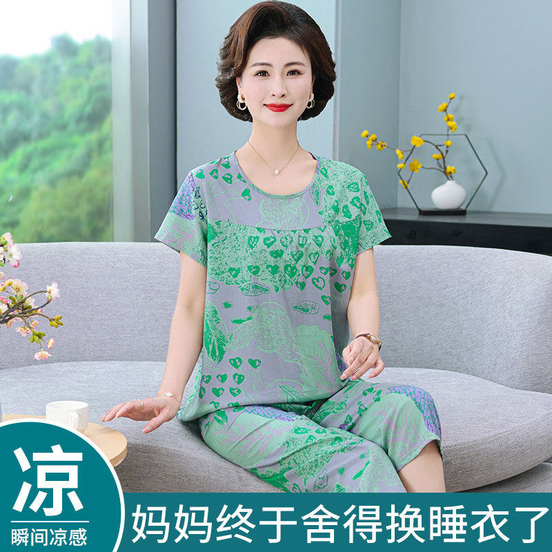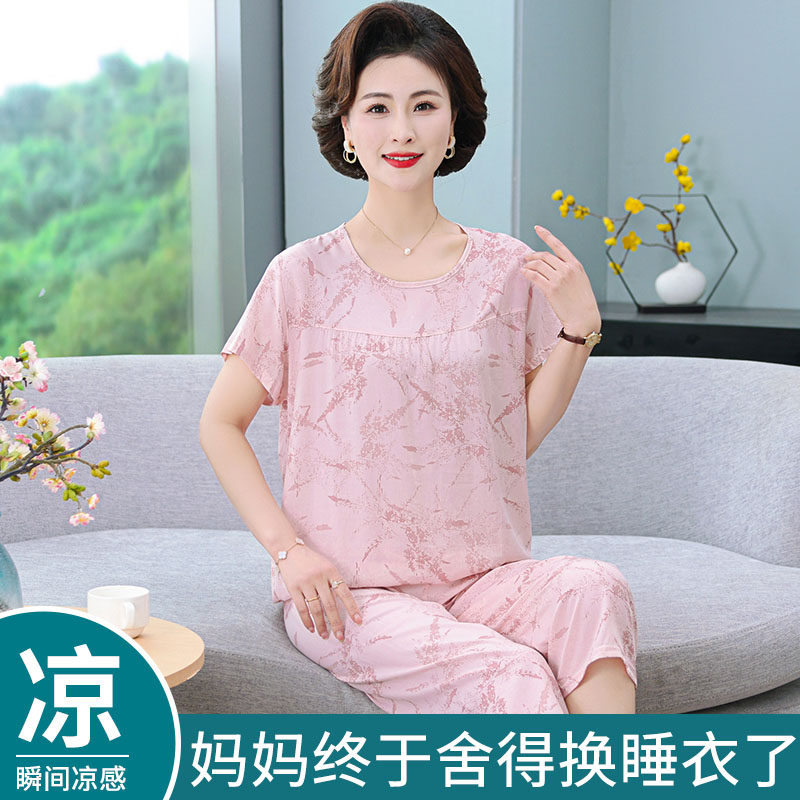 女士夏天睡衣女款2026新款春装棉绸短袖家居服套装大码薄款莱赛尔