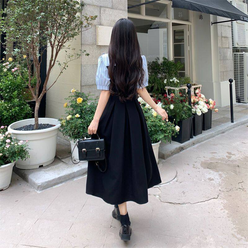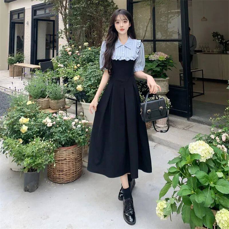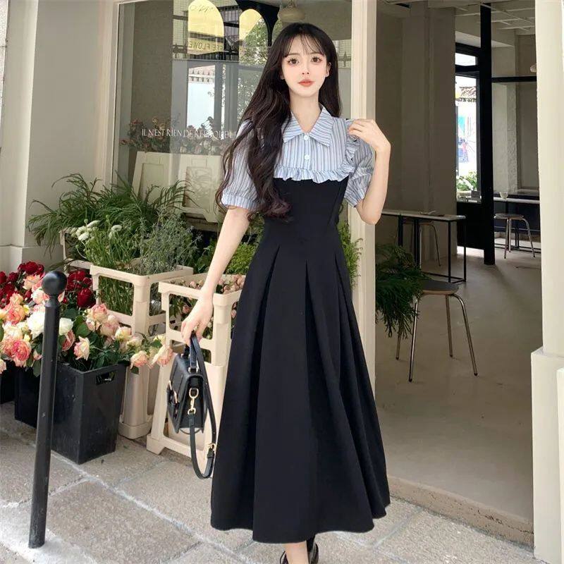 300斤胖mm大码连衣裙女收腰显瘦a字裙夏天学院风假两件气质长裙子
