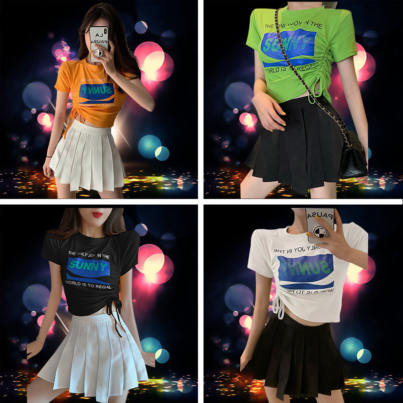 成人啦啦操啦啦队短袖服装夏爵士舞现代舞蹈韩版演出服套装女新款