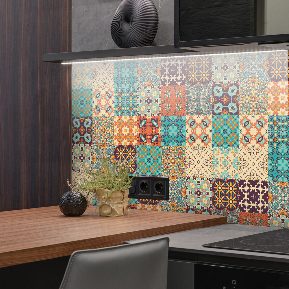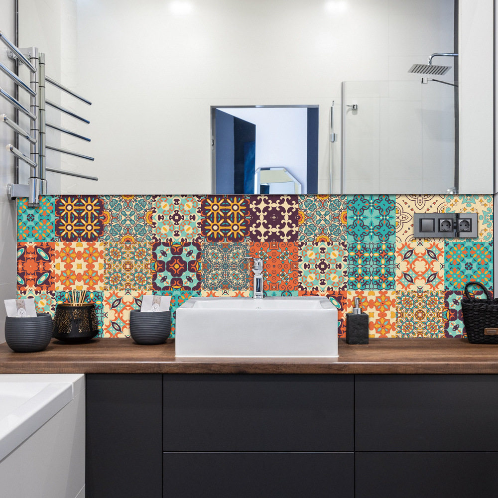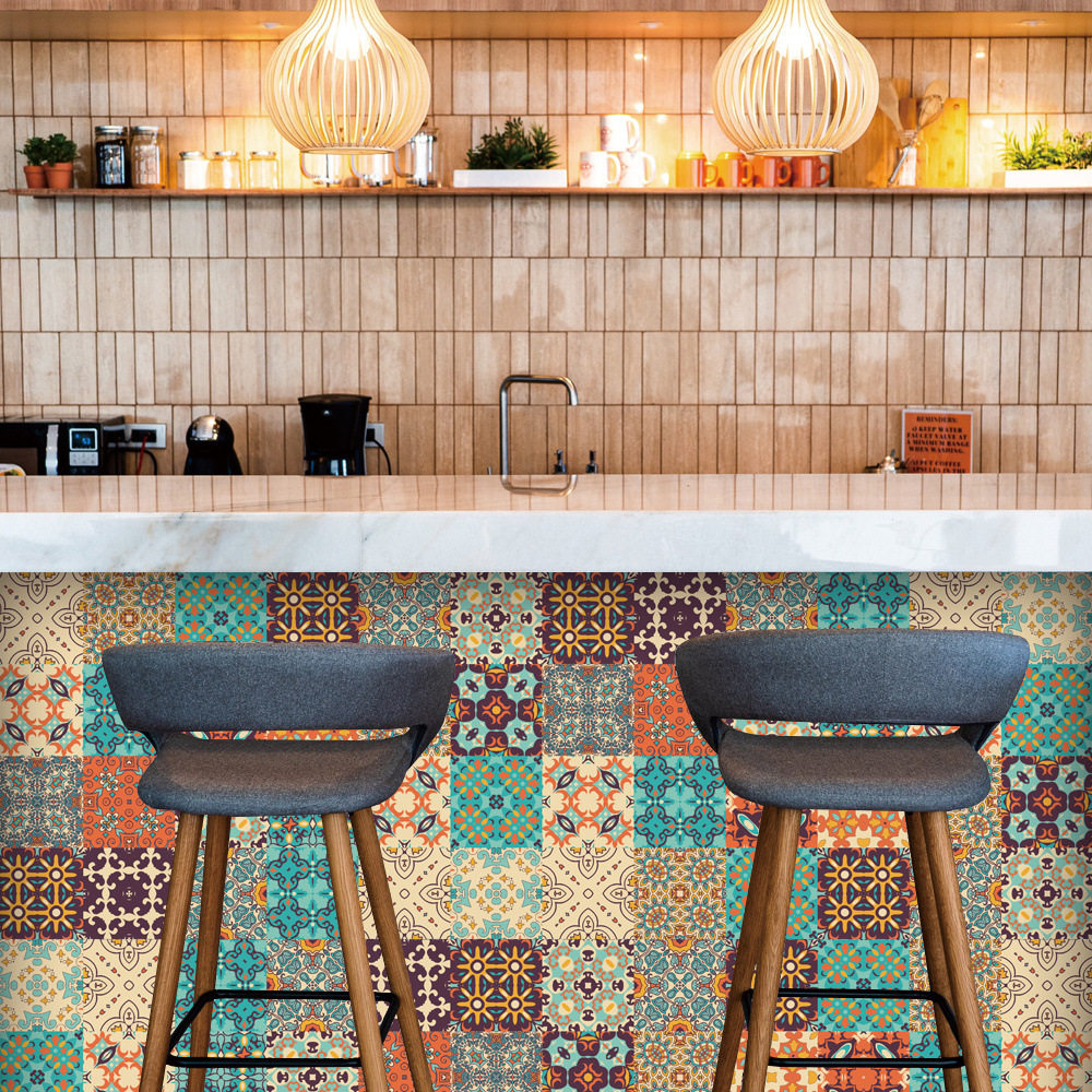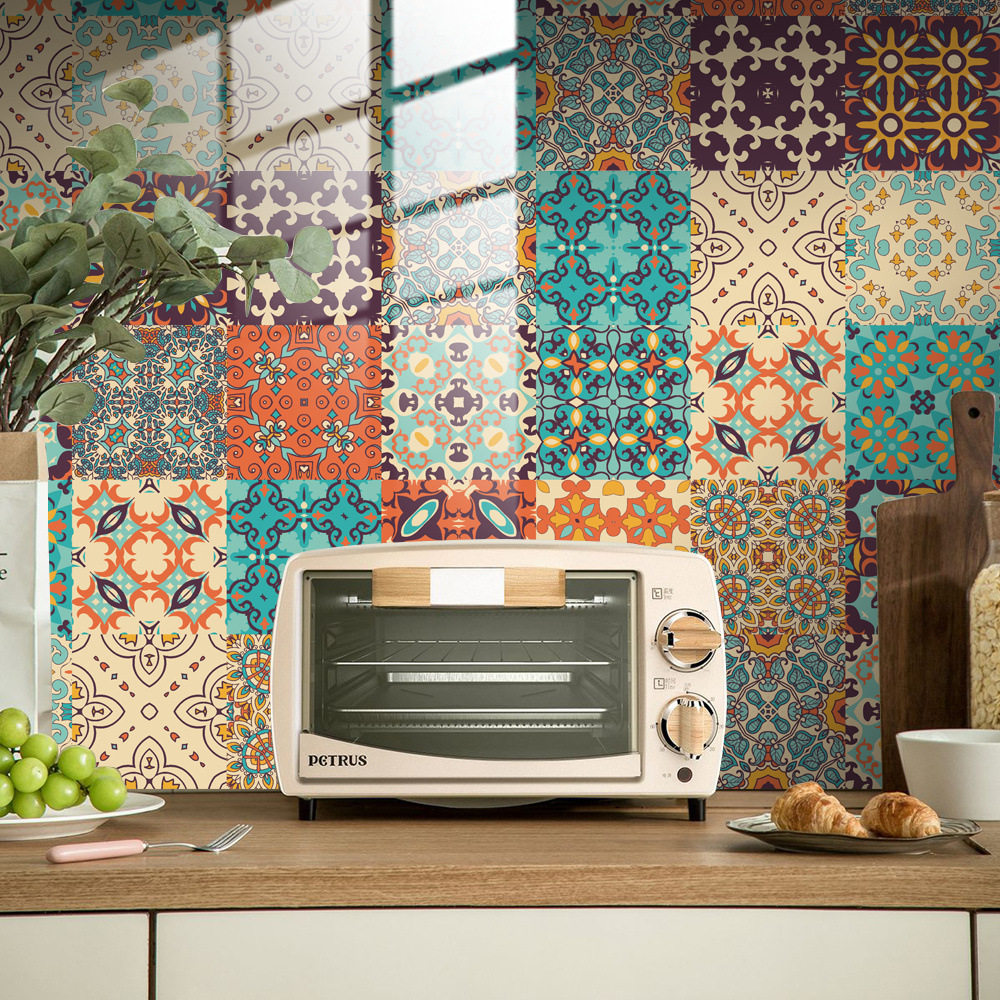 复古曼陀罗台阶楼梯瓷砖贴纸墙面柜子贴遮丑美化装饰自贴不伤墙贴