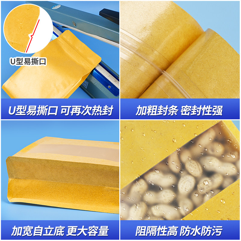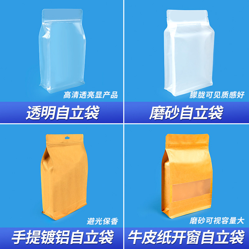八边封自立袋透明牛皮纸自封袋茶叶零食包装袋食品密封袋坚果分装