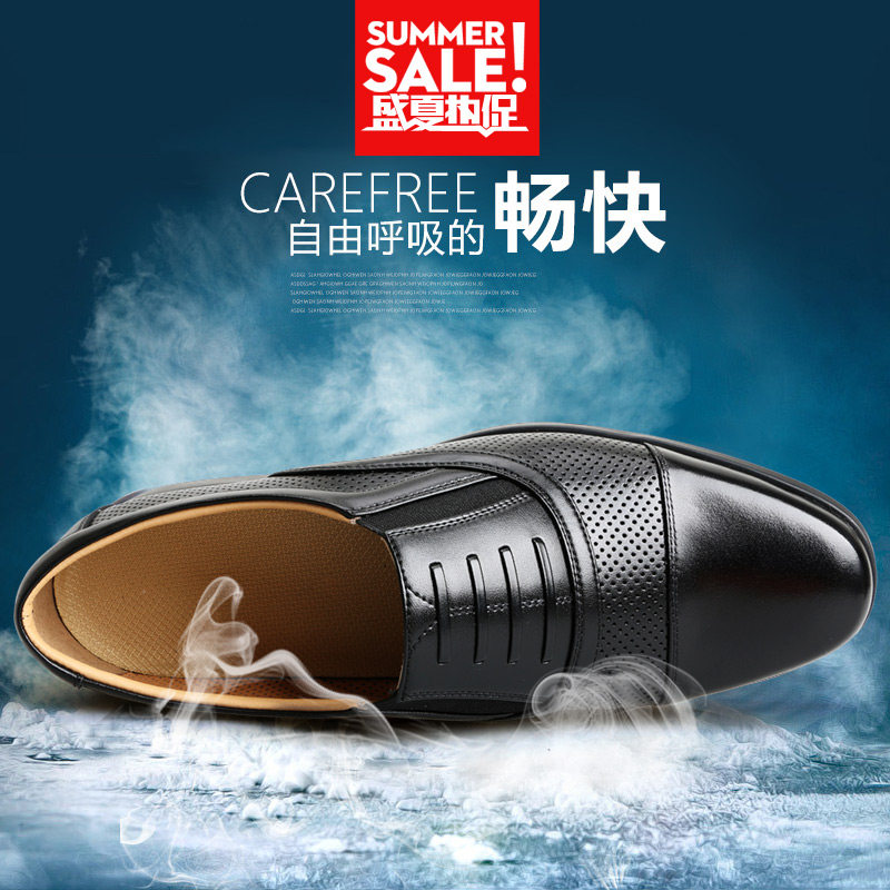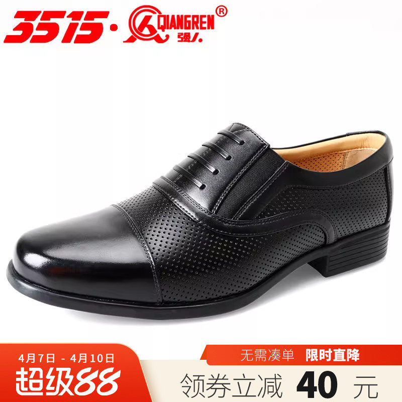 3515强人夏季真皮皮鞋男透气网眼商务正装皮凉鞋尖头英伦皮鞋男鞋