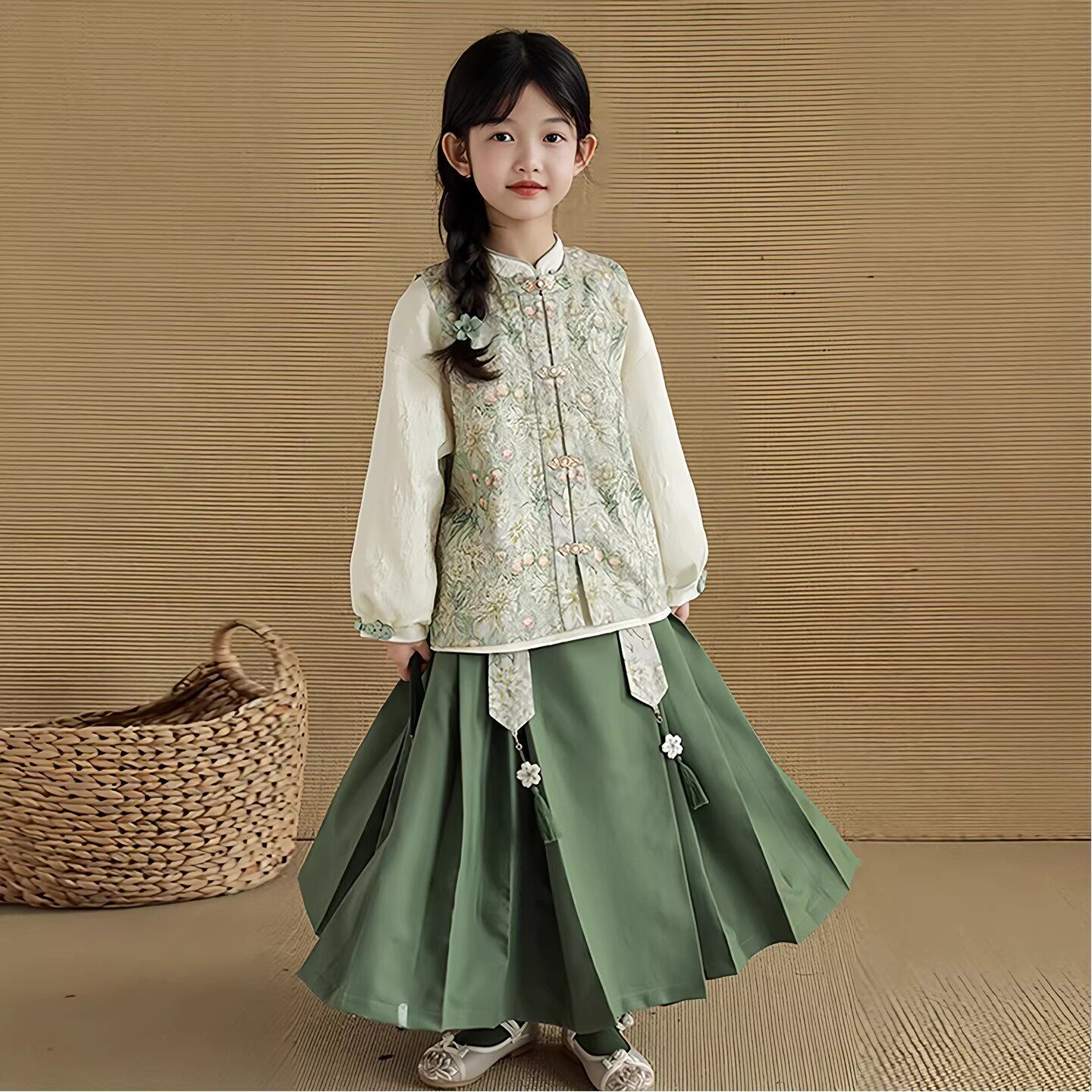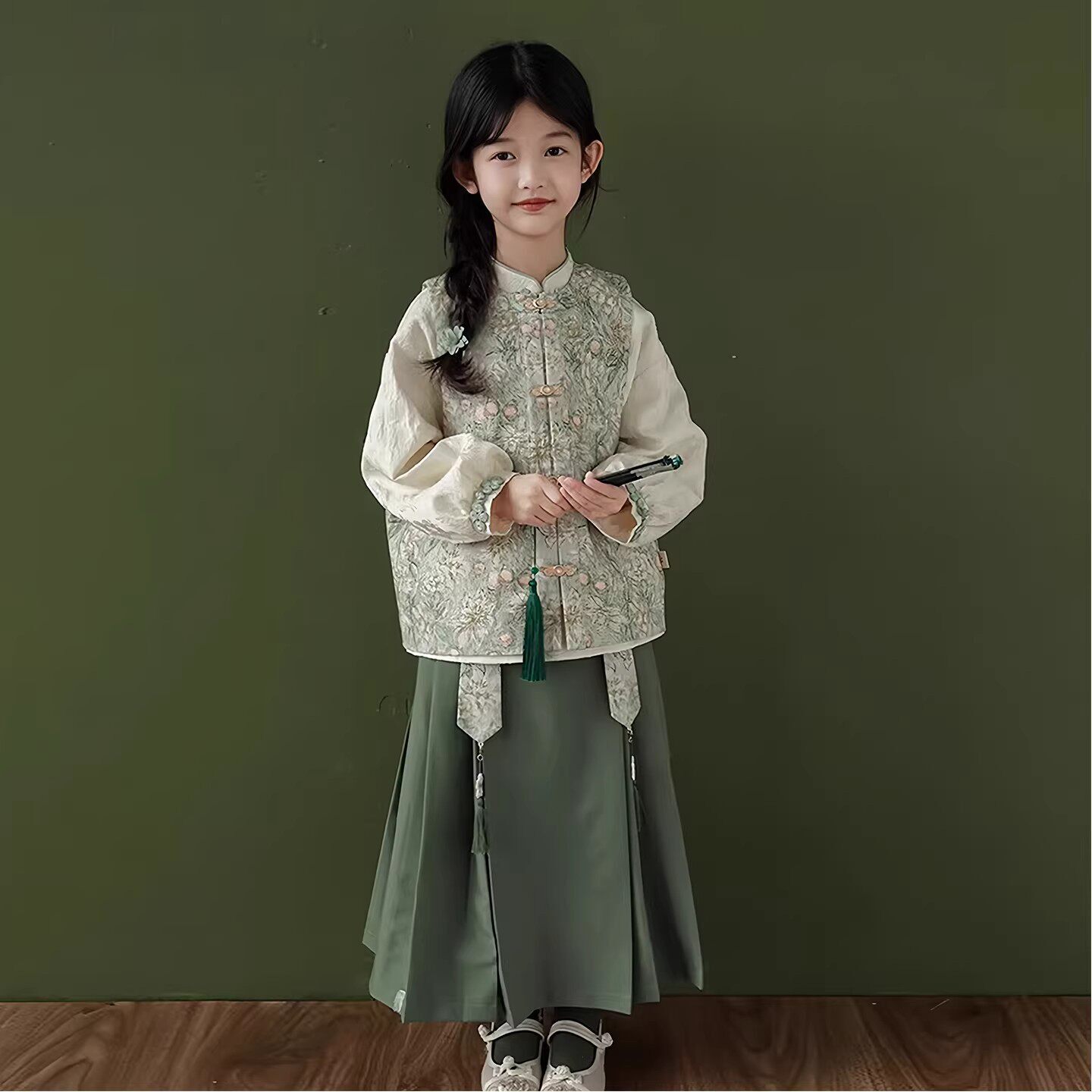 女童汉服春季2026年新款中国风新中式唐装三件套儿童古风马甲套装
