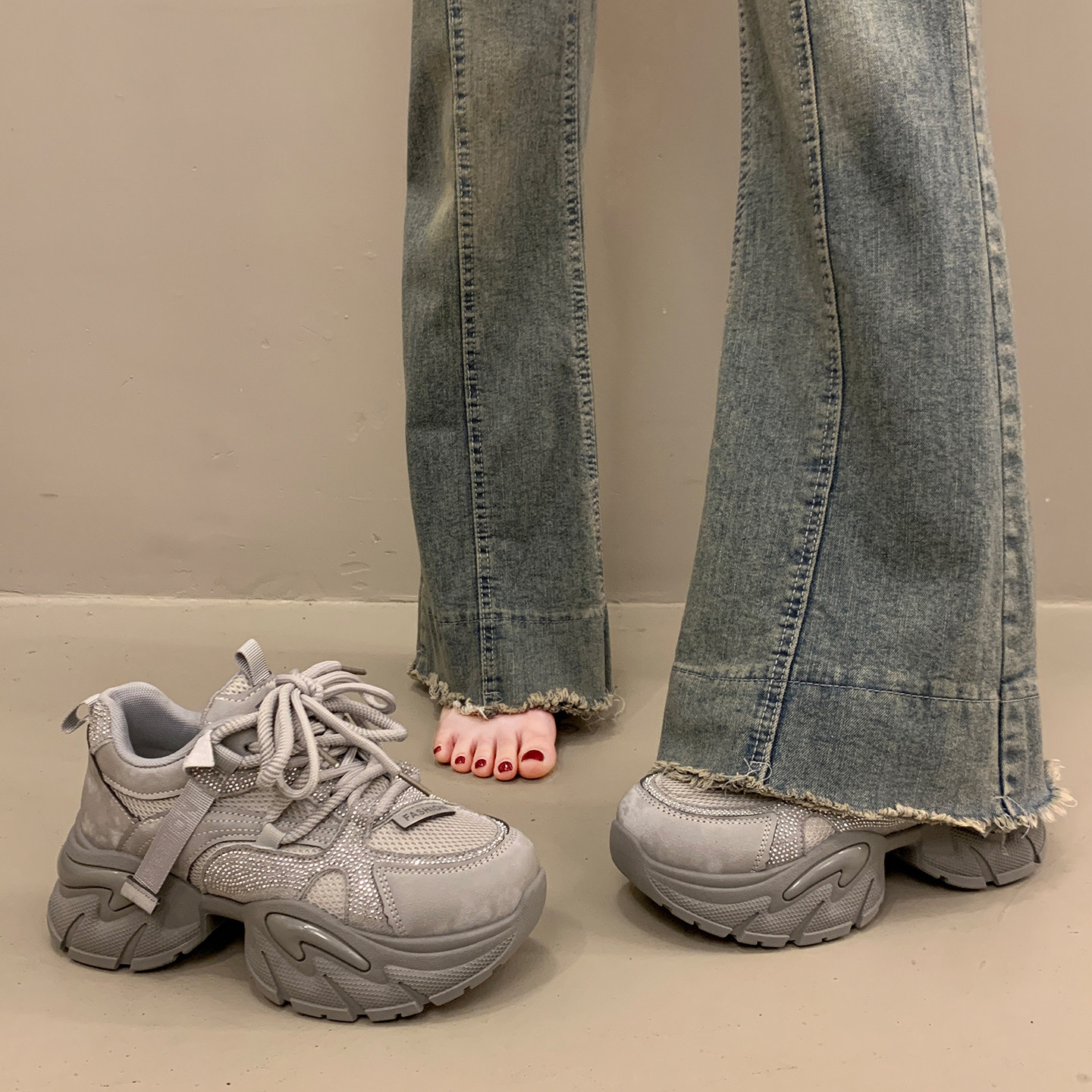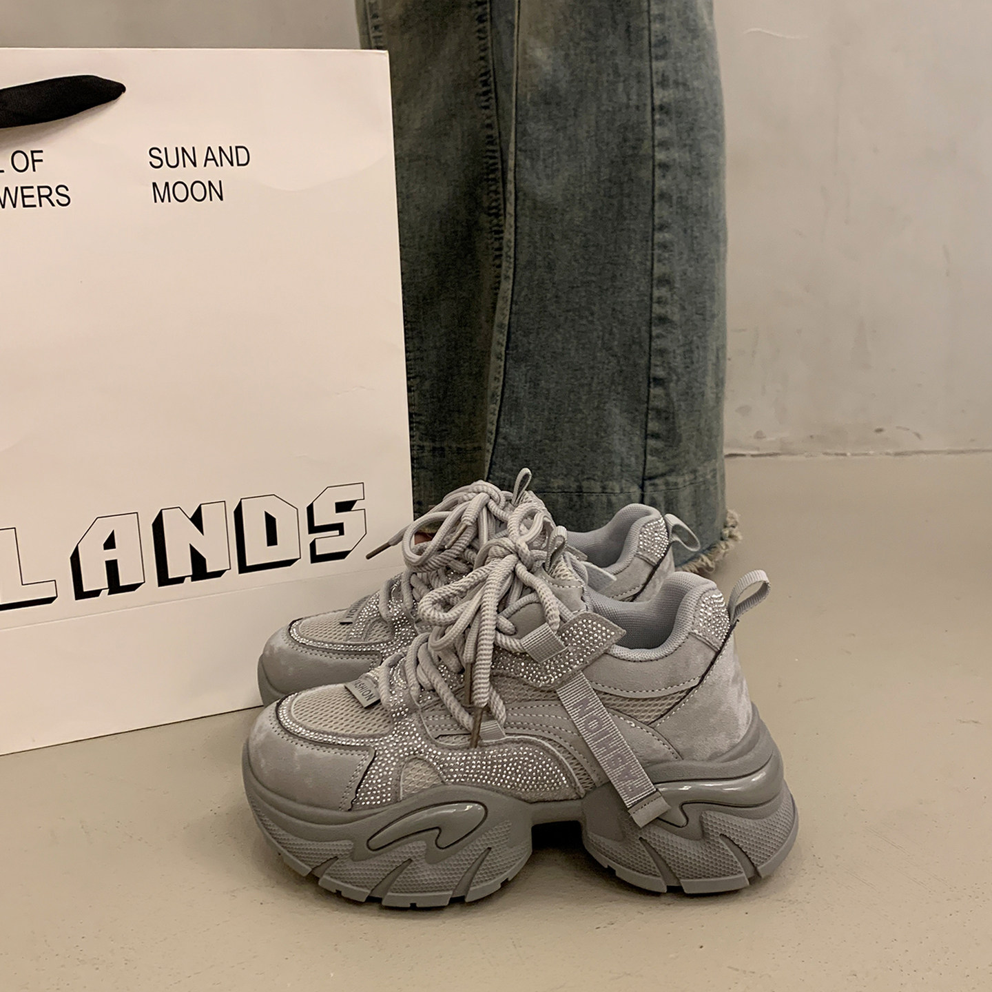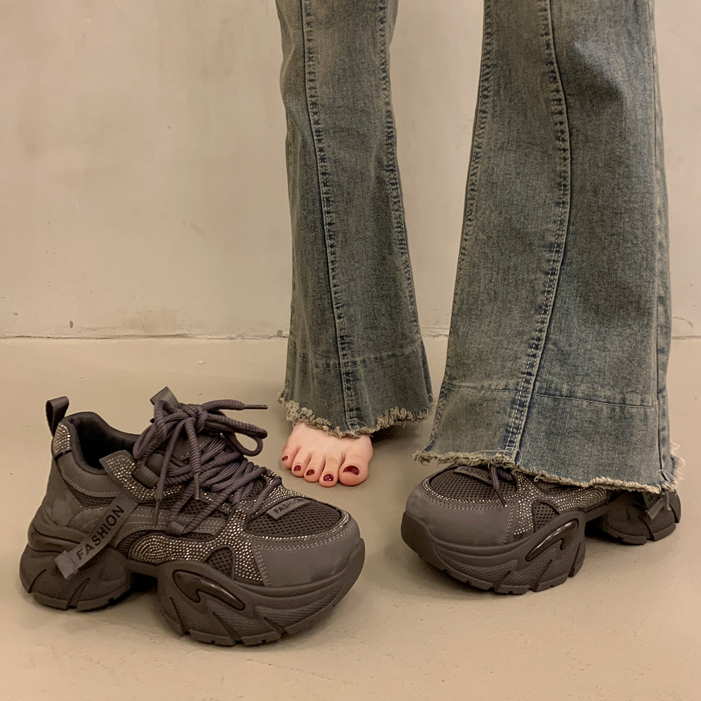 灰色厚底老爹鞋女小个子增高2026超火新款爆款夏季百搭运动休闲鞋