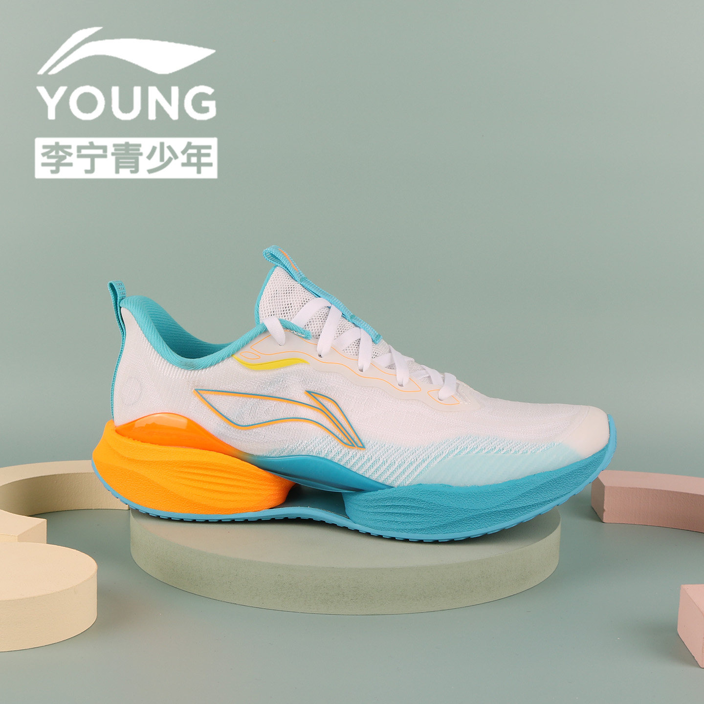 李宁男童鞋夏季超轻22单网鞋中大童防滑减震透气跑步鞋纽扣运动鞋