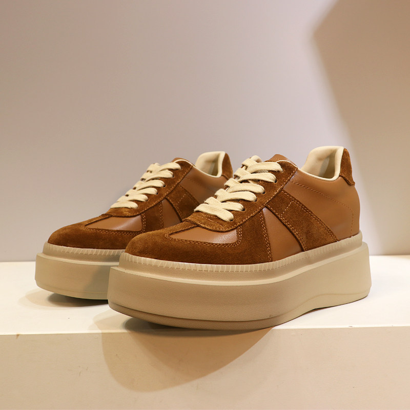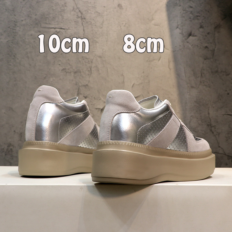 8公分美拉德内增高女鞋春夏真皮镂空德训鞋10cm小个子厚底小白鞋