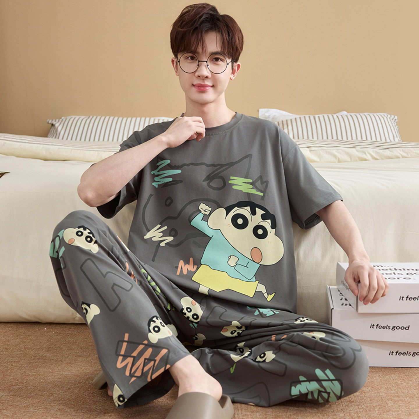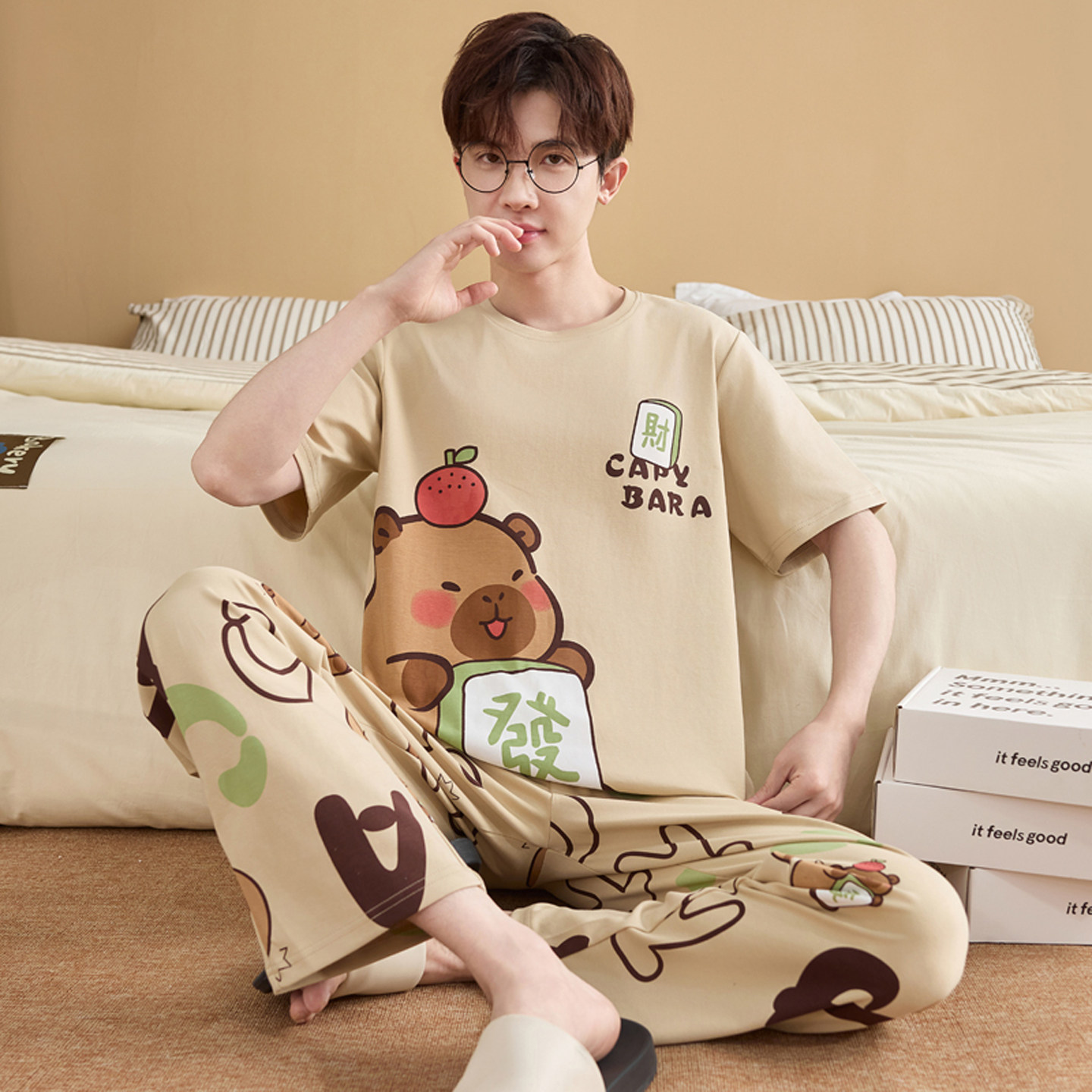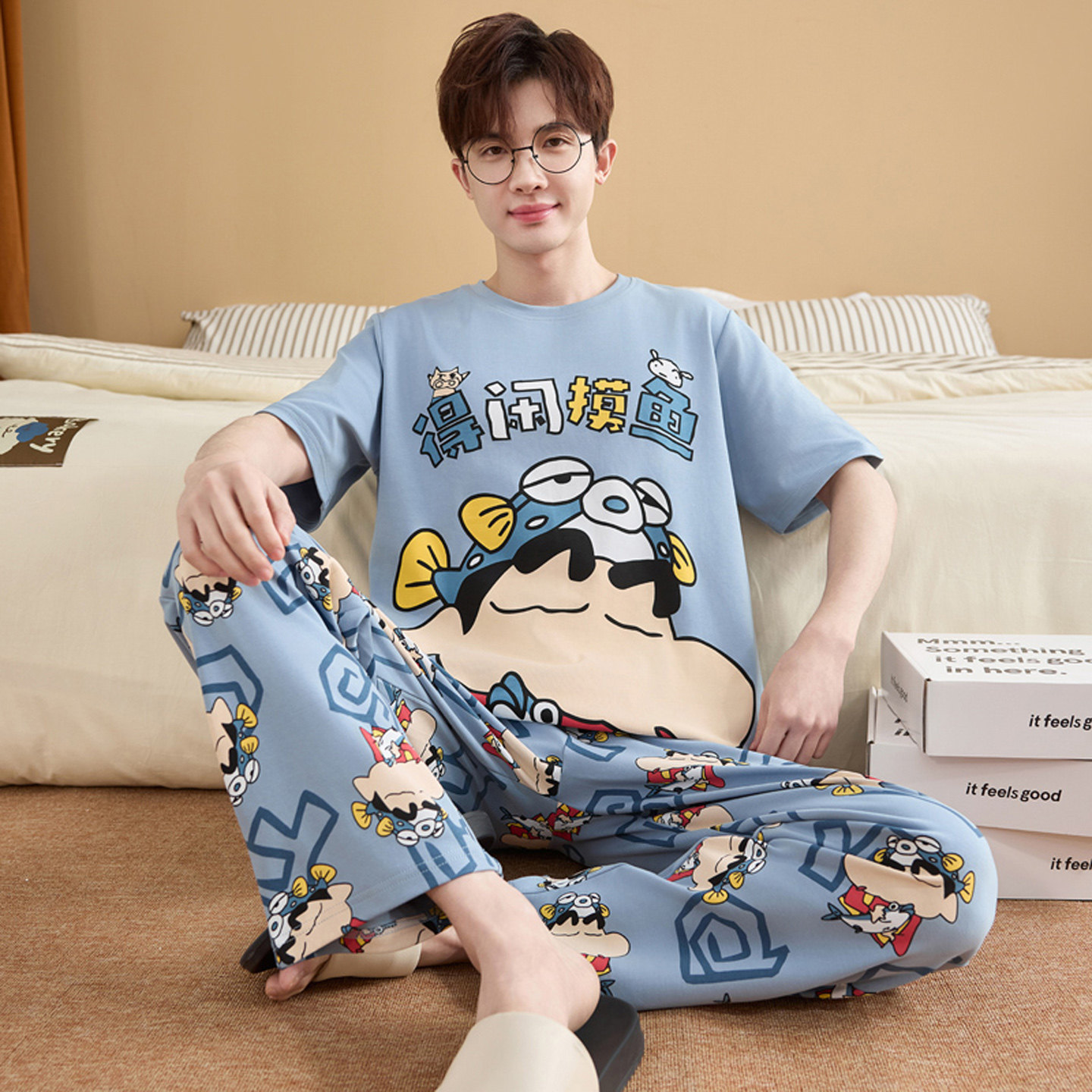 男款睡衣夏季纯棉短袖长裤青少年学生卡通2026新款全棉家居服套装