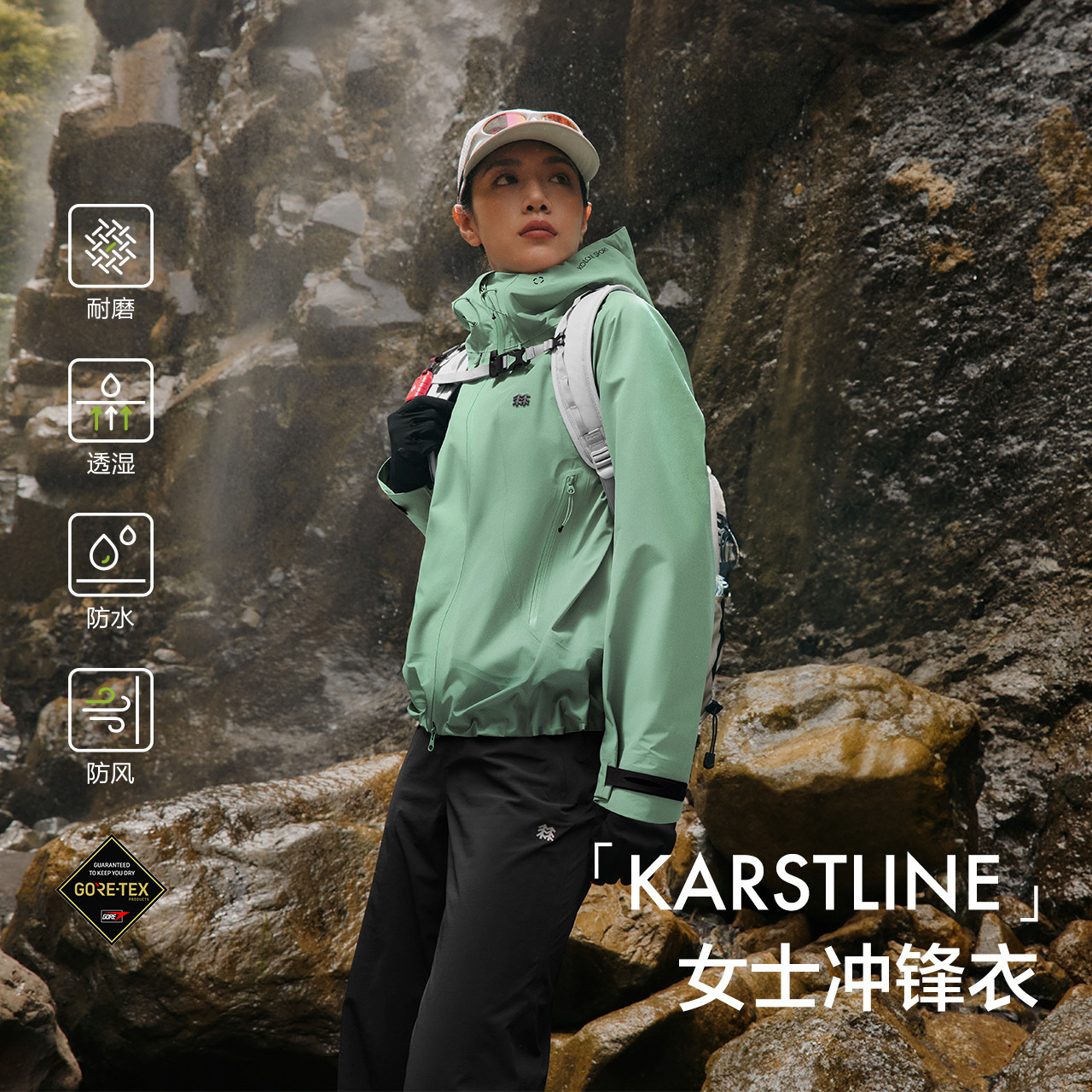 KOLON SPORT可隆冲锋衣女款透湿防风防水耐磨外套KARSTLINE冲锋衣
