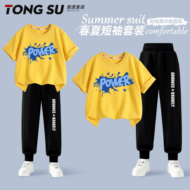 男童夏季套装2026新款薄款男孩短袖t恤休闲两件套儿童痞帅风夏装