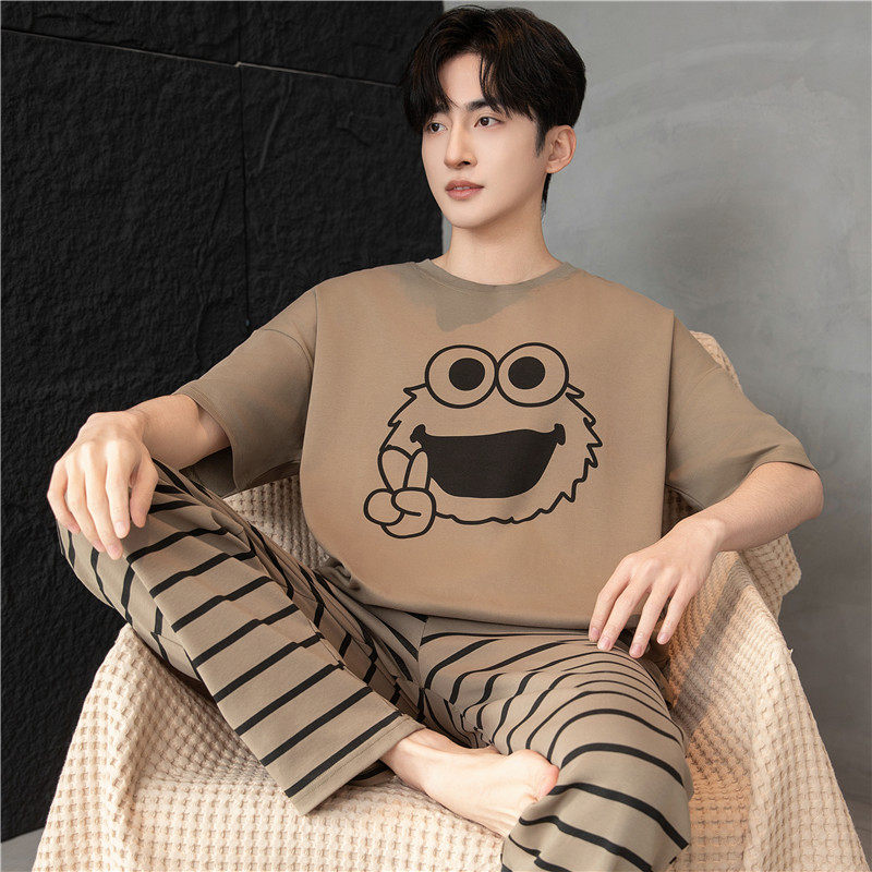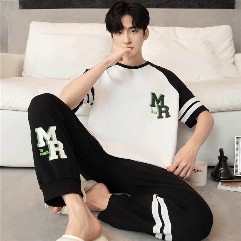 睡衣男夏季纯棉短袖长裤男孩中大童青少年学生全棉条纹家居服套装