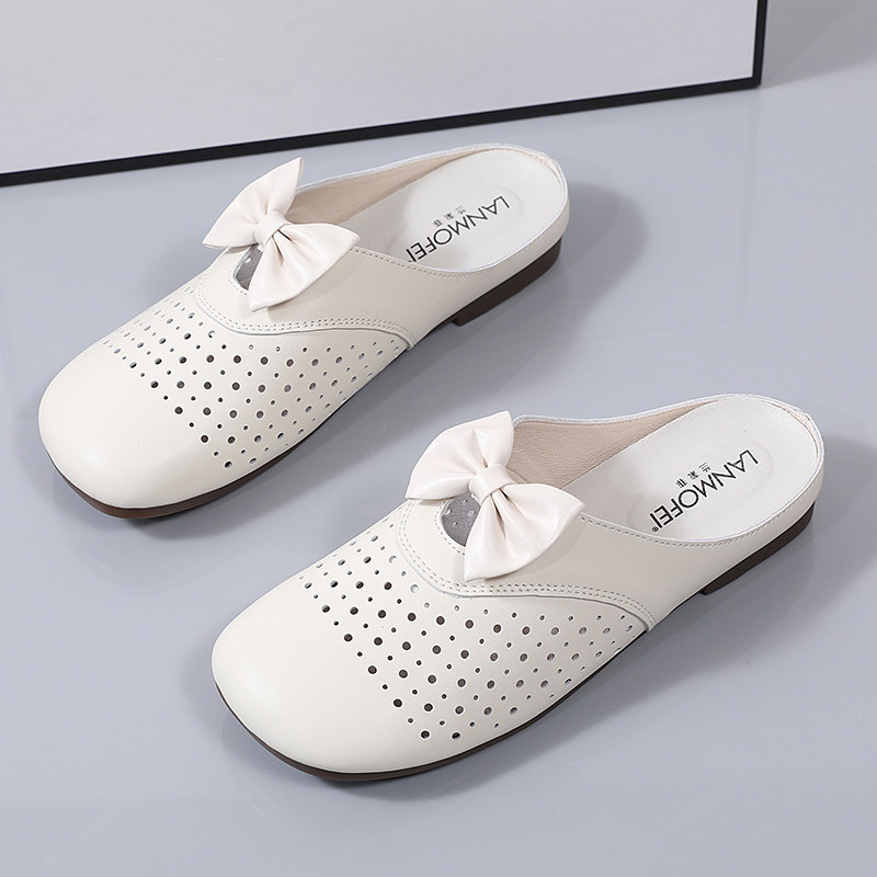 包头拖鞋女2026新款夏季外穿高级感真皮女士外出法式一脚蹬半拖鞋
