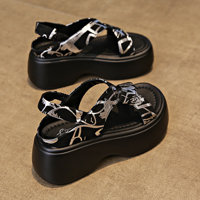 品牌断码罗马凉鞋女夏外穿2026新款高级感配裙子增高跟厚底沙滩鞋