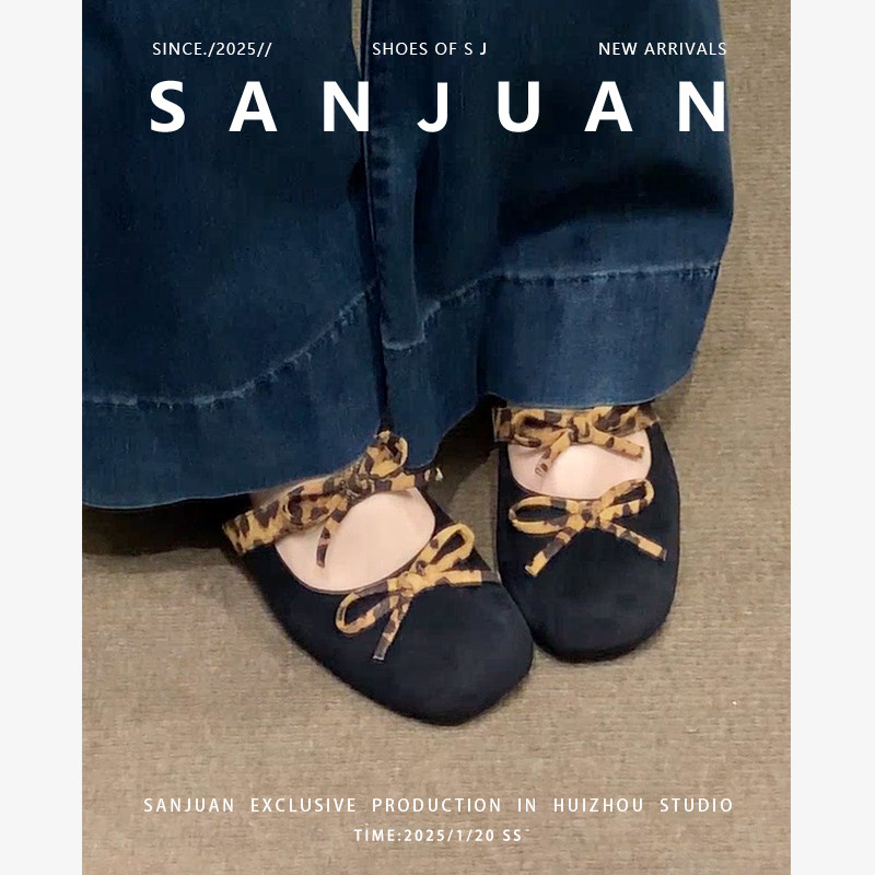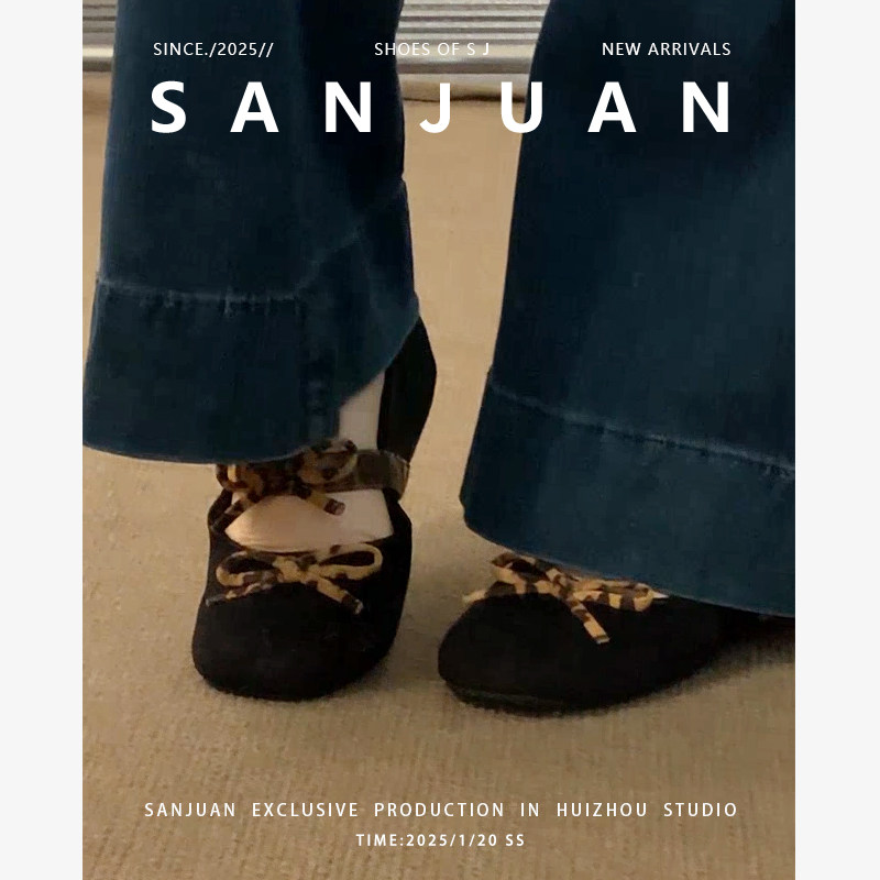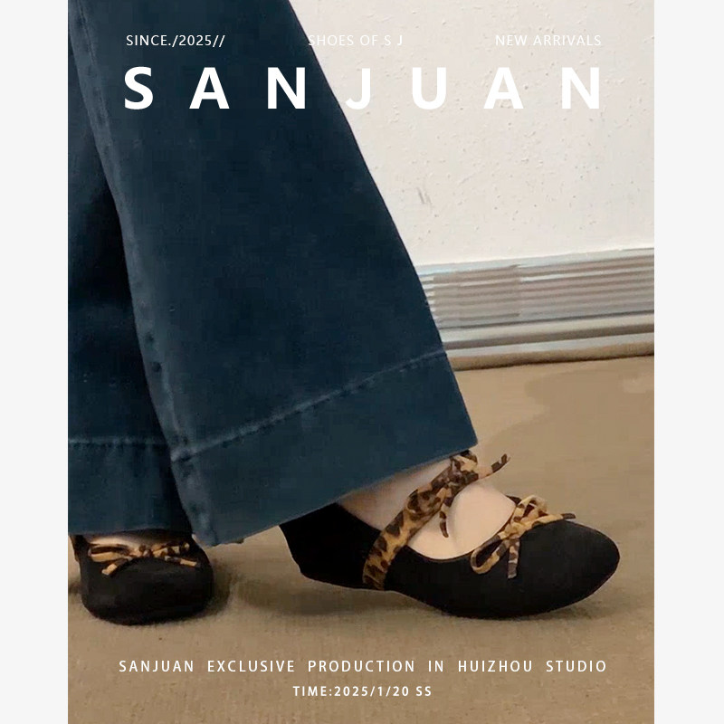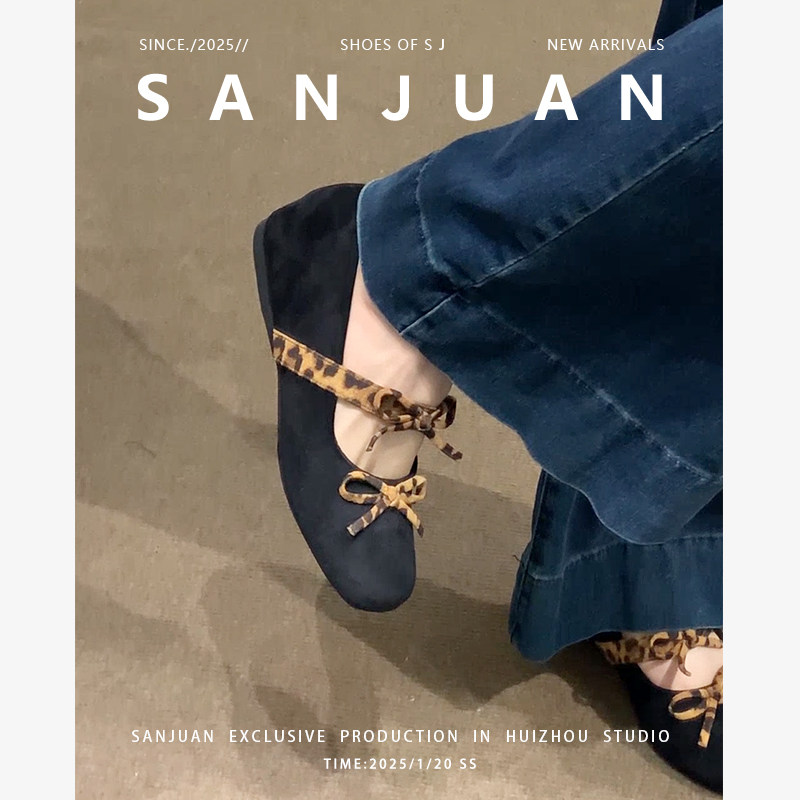 羊皮版sanjuan三卷豹纹内增高单鞋方头鞋子小个子复古玛丽珍女鞋
