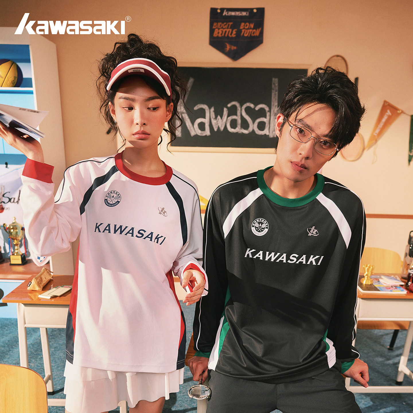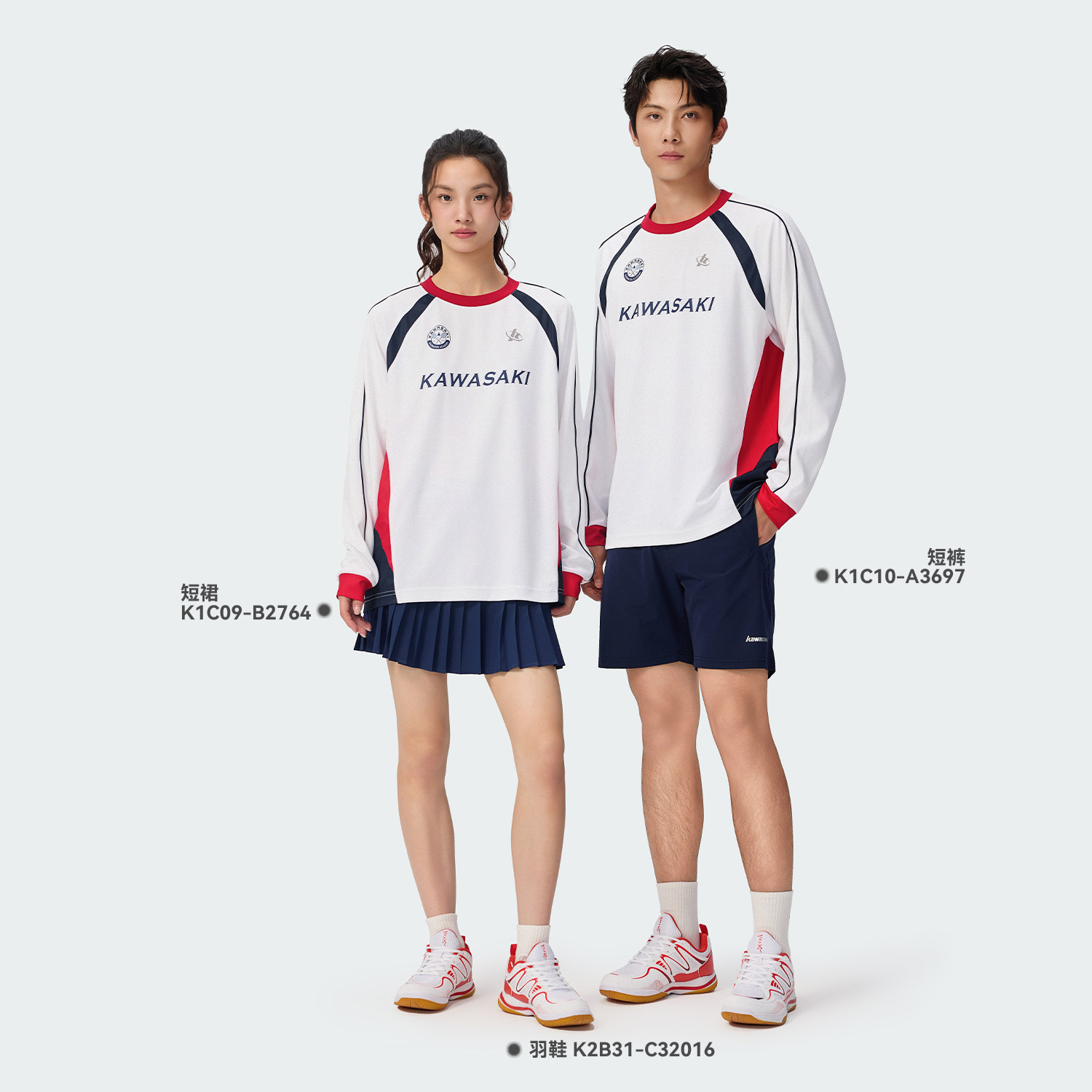川崎羽毛球服网球服男女款运动长袖圆领休闲透气运动服上衣秋冬款