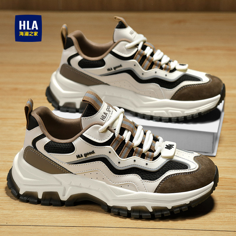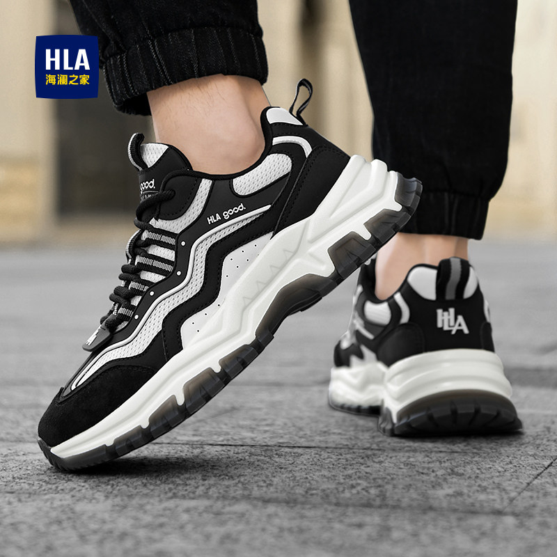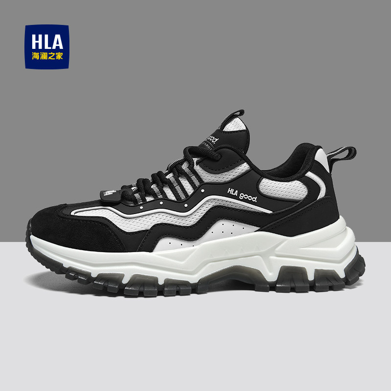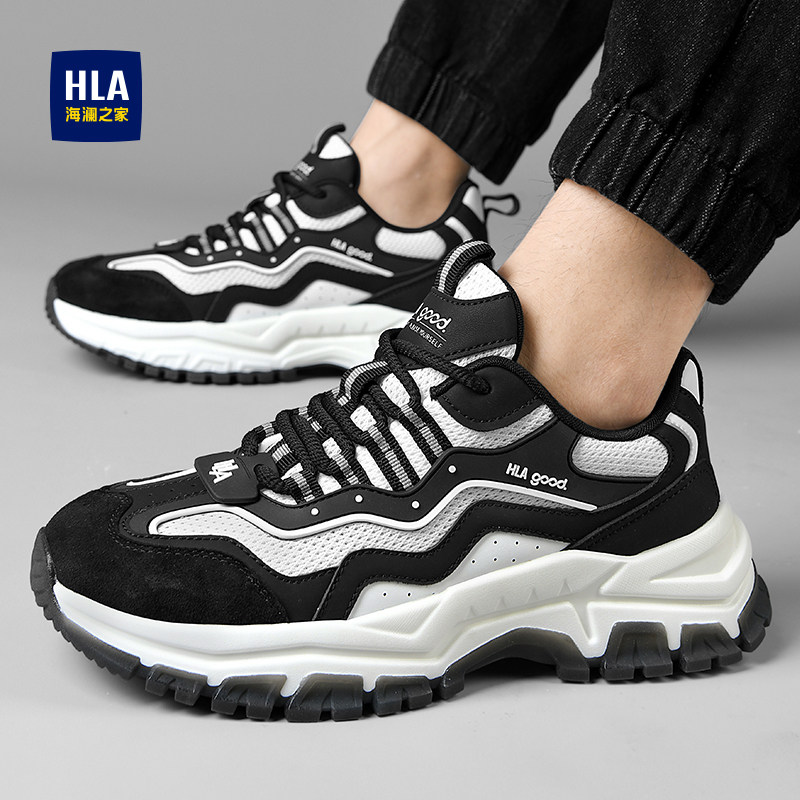 海澜之家黑白熊猫鞋男款春夏季透气网面休闲运动鞋男女增高老爹鞋