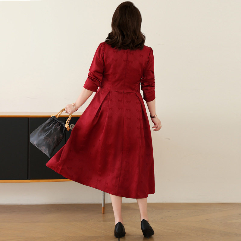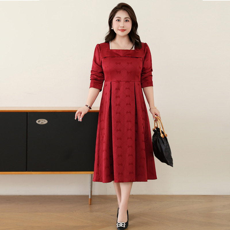 300斤特大码女秋装气质显瘦收腰连衣裙200胖MM韩版红色长袖礼服裙