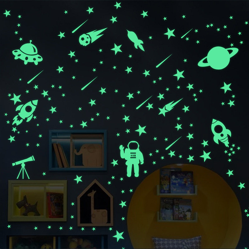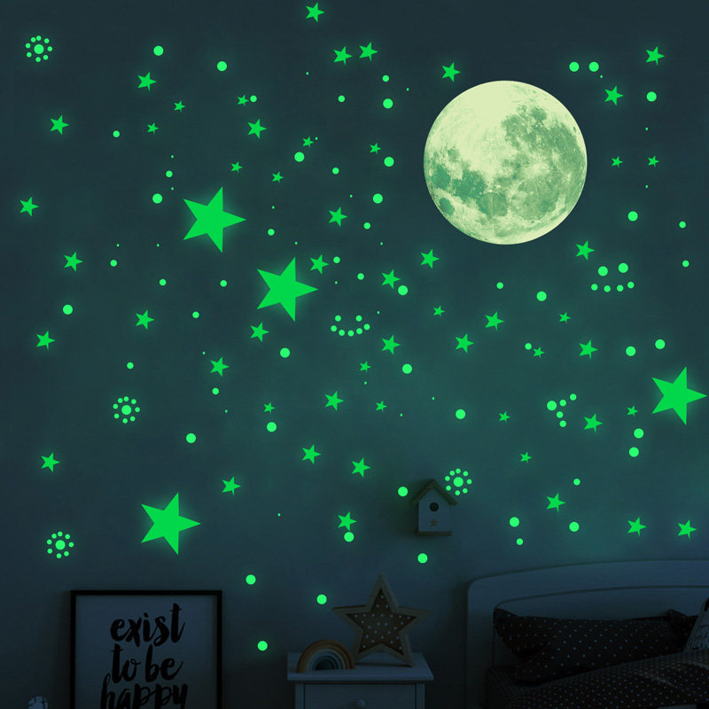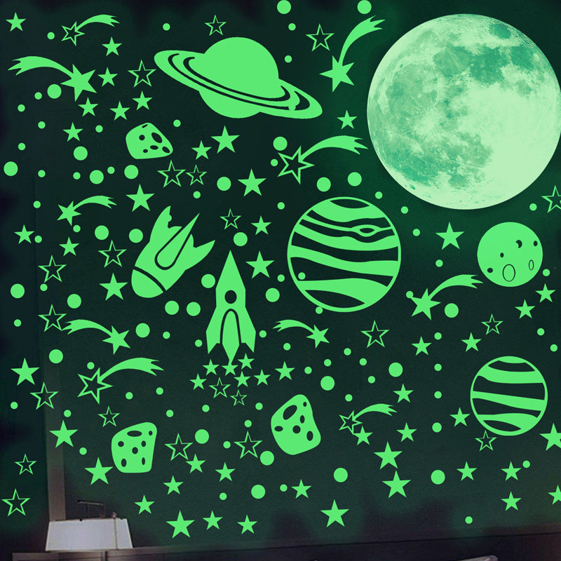 夜光贴画儿童房卧室墙面贴纸卡通防水发光月球星空荧光创意装饰贴