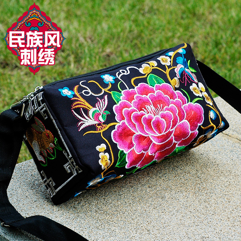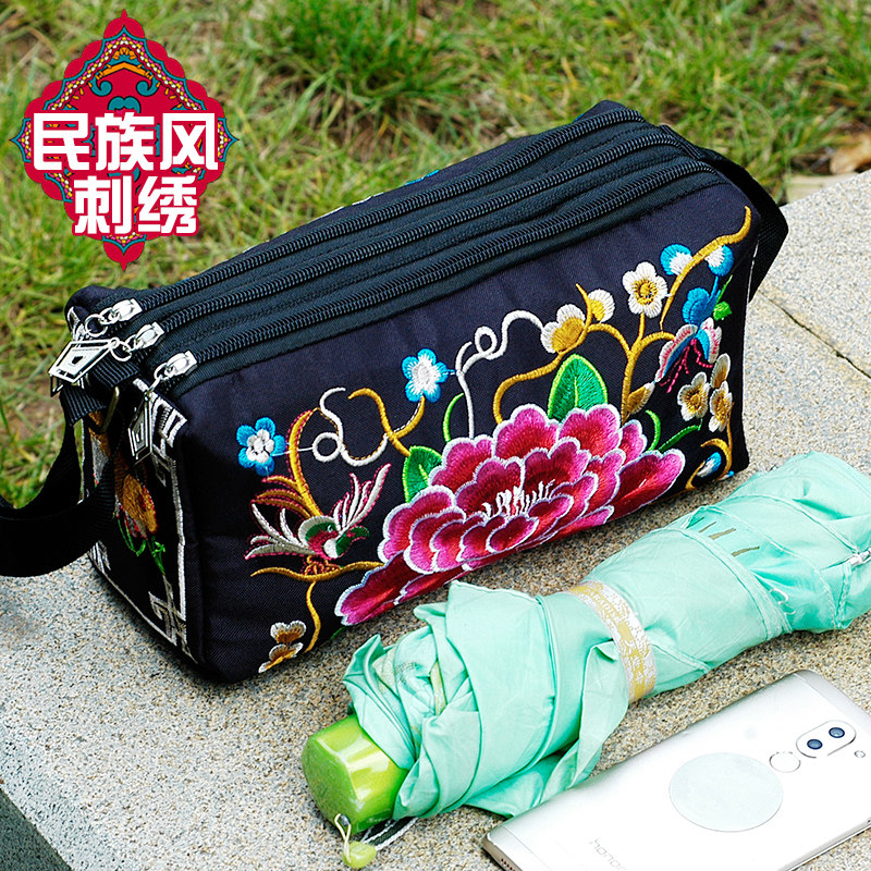 2026新款云南民族风刺绣花包包帆布休闲简约女士三层单肩斜挎包