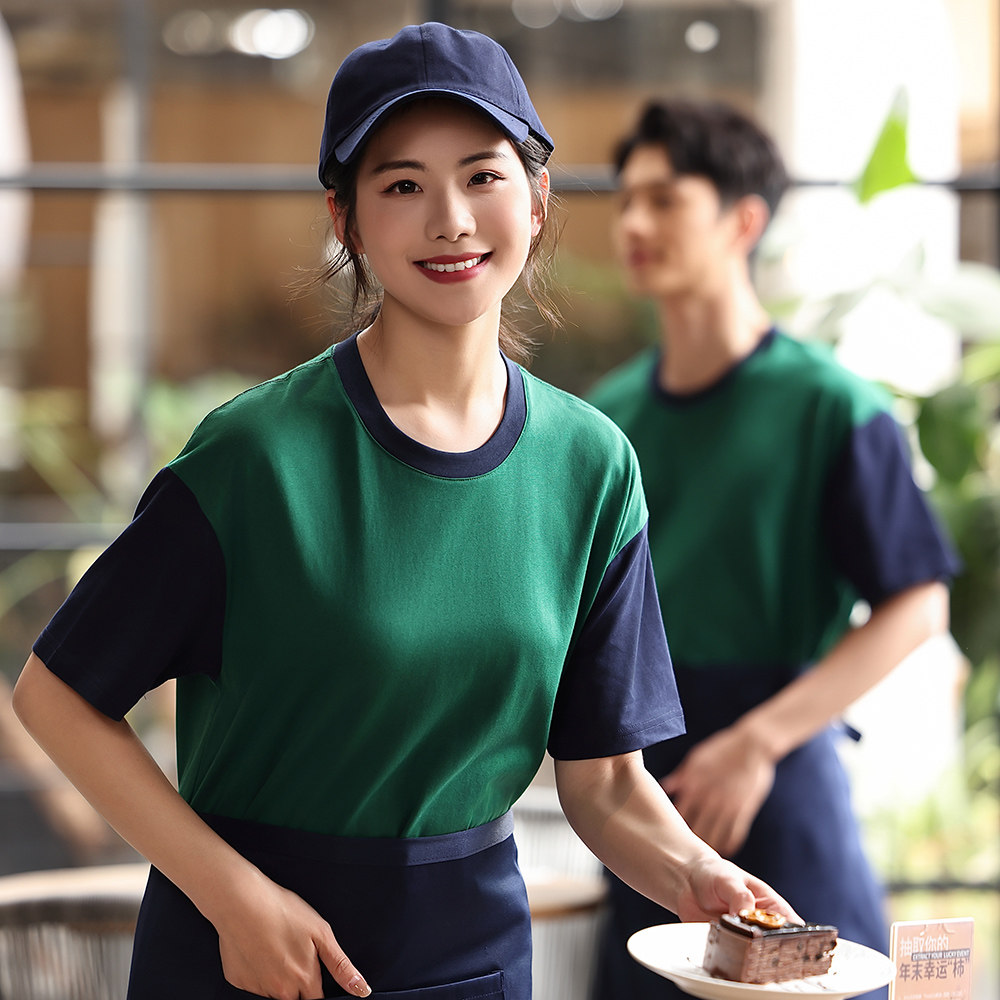 餐饮工作服定制服务员夏季纯棉T恤短袖餐厅火锅烧烤店印字LOGO