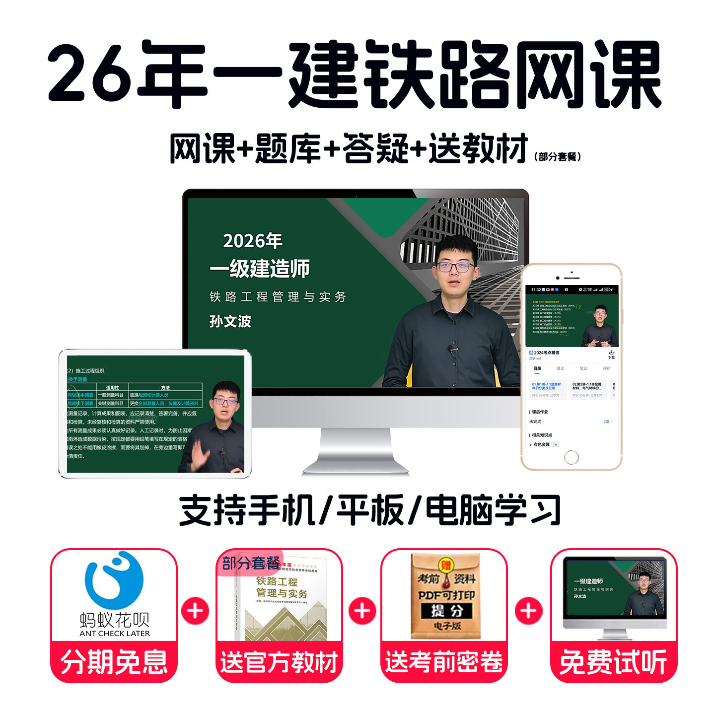 2026一建铁路孙文波网课一级建造师视频课件教材精讲题库环球网校