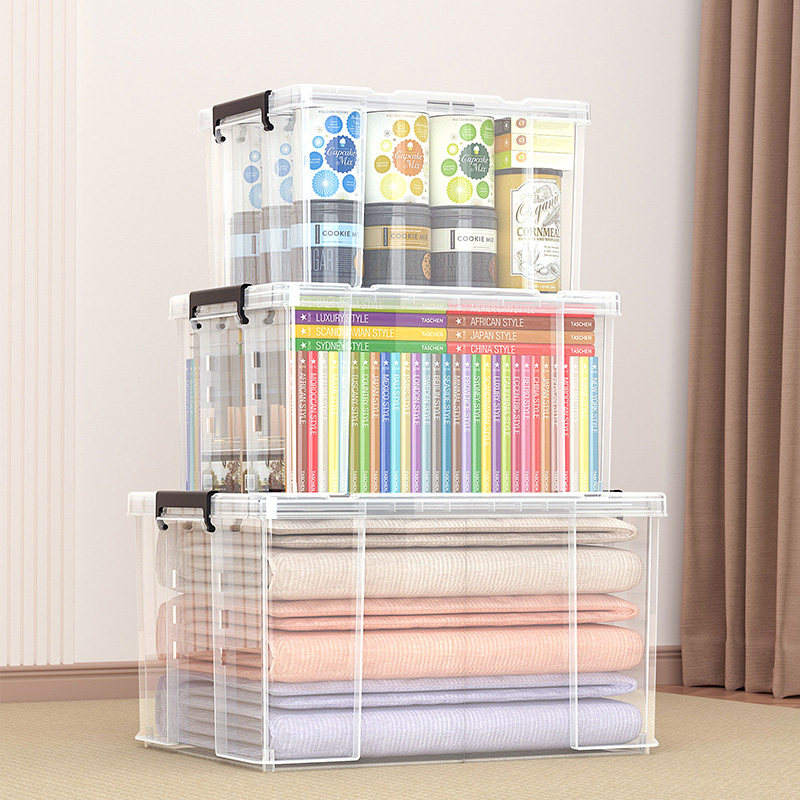 透明收纳箱整理箱玩具零食带盖储物筐塑料超大容量置物箱子收纳盒