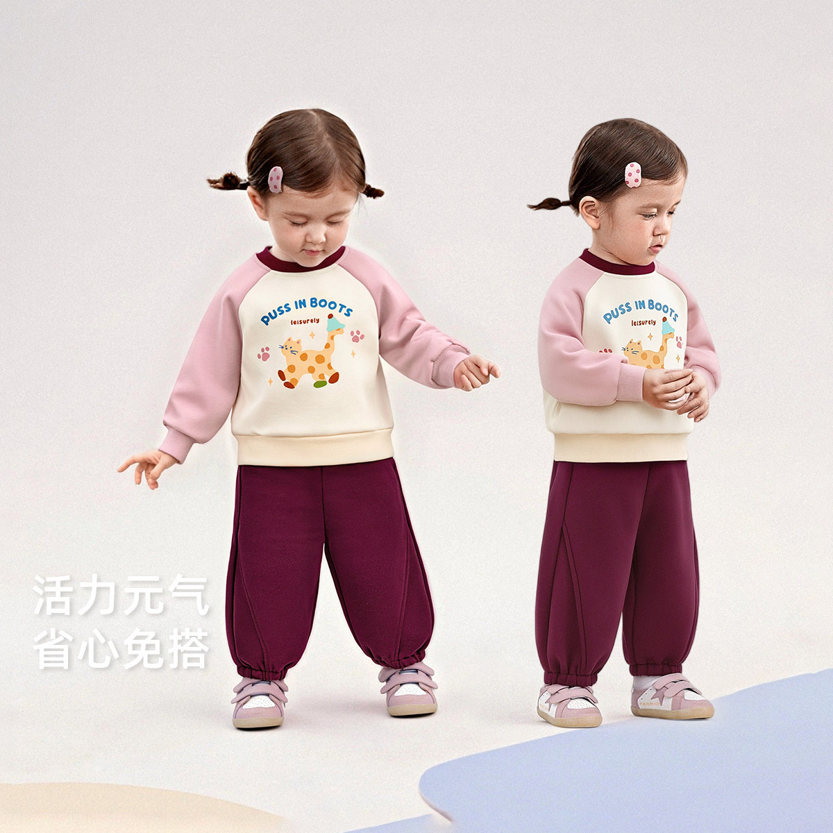 女童卫衣套装宝宝撞色甜美春装小女孩春季衣服2026新款儿童两件套