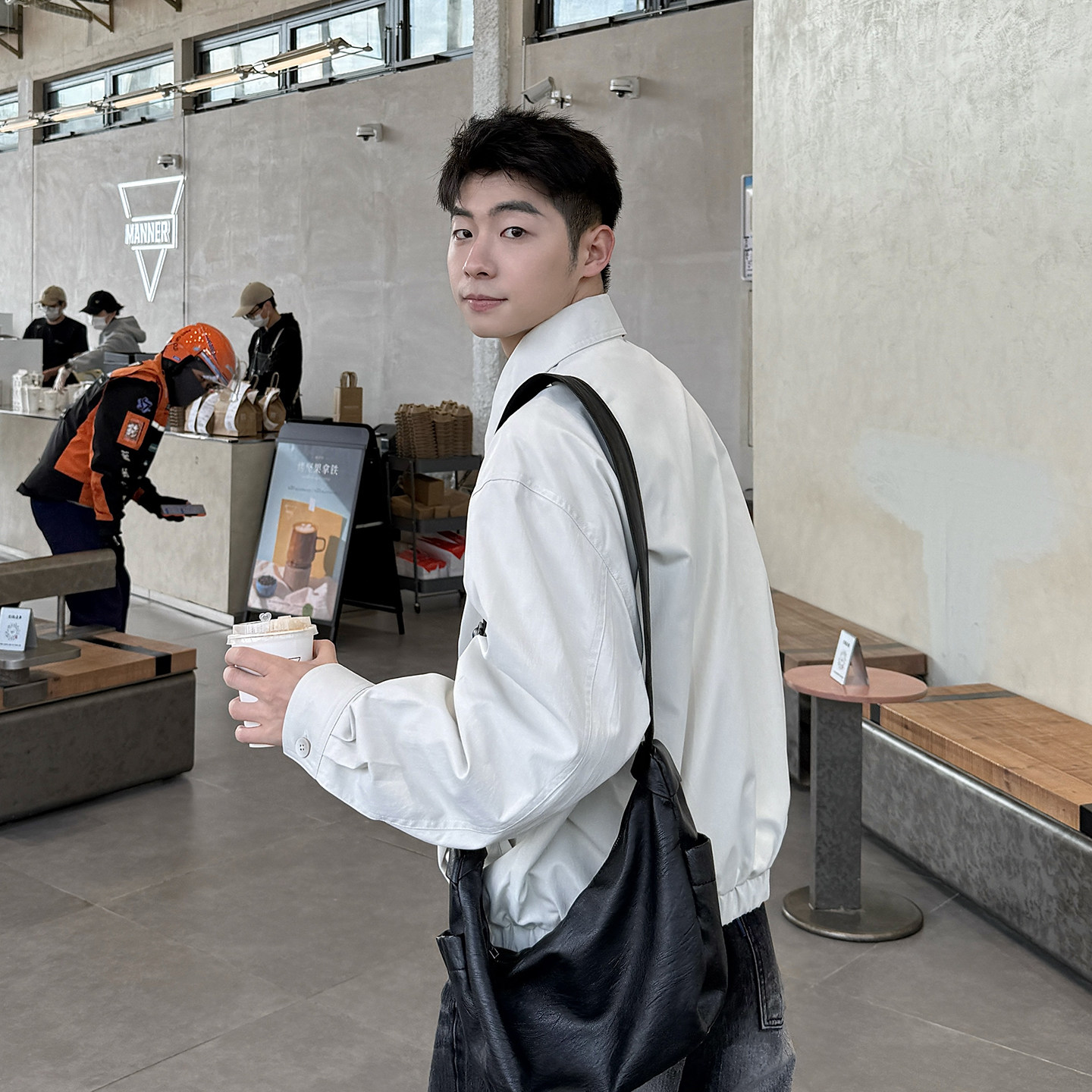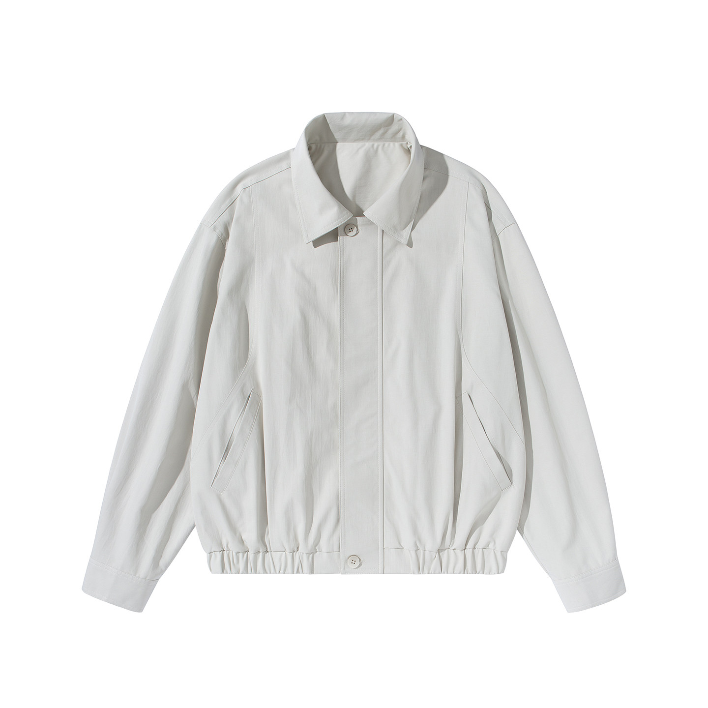 米白色短款翻领夹克春季男款日系复古宽松休闲长袖外套2026新款