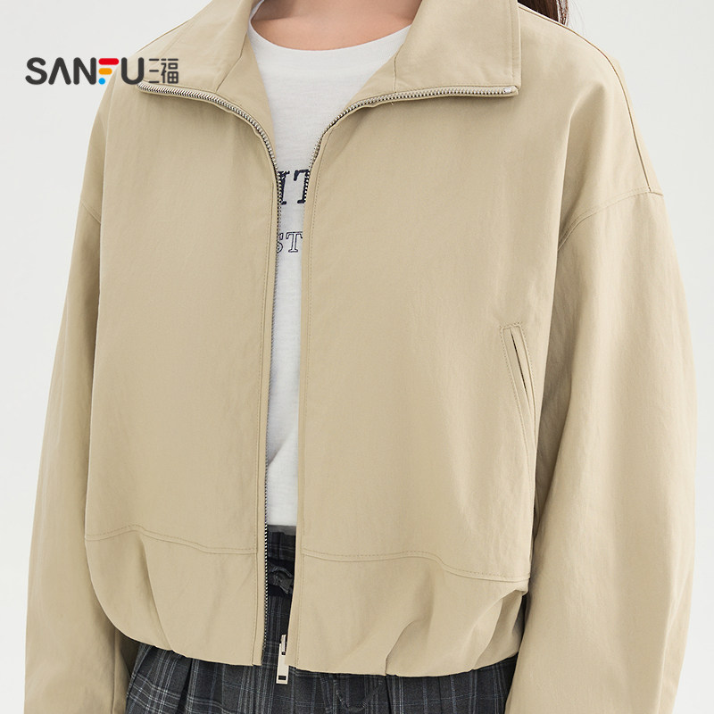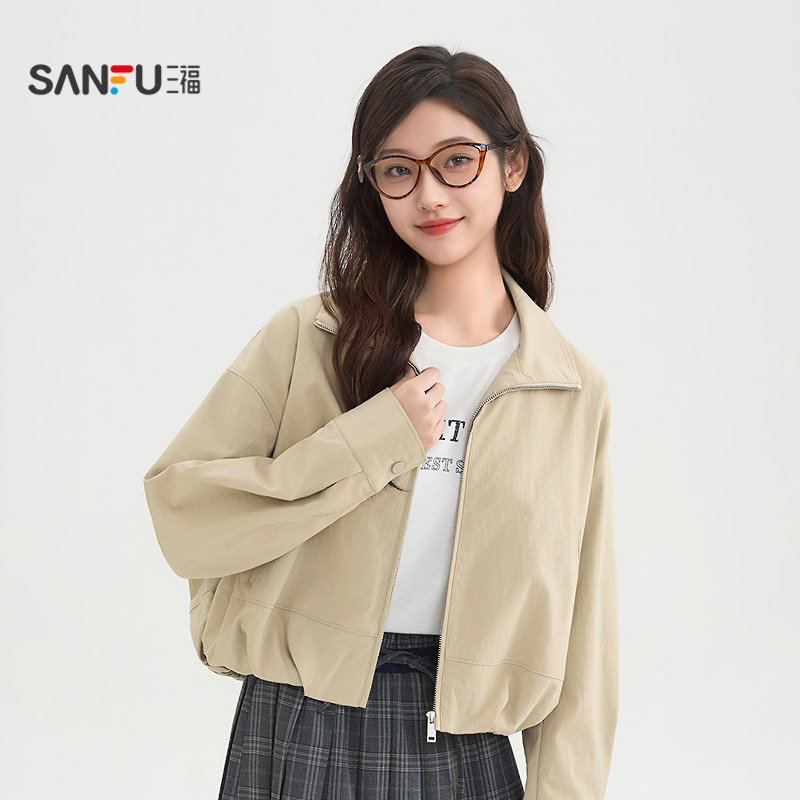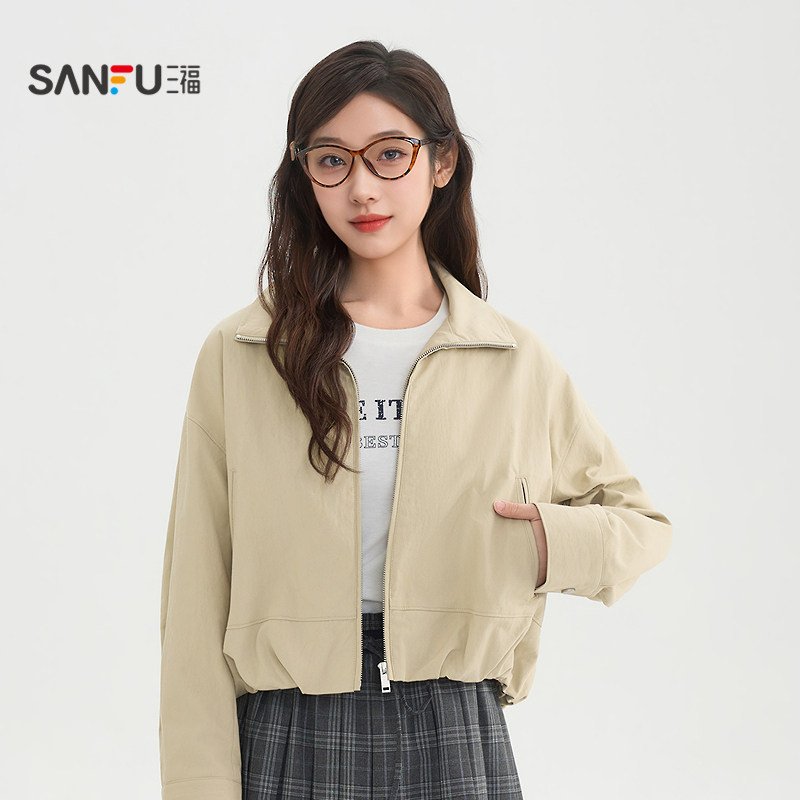 三福花苞摆外套女2026新款春季时尚小个子翻领夹克上衣女装516811