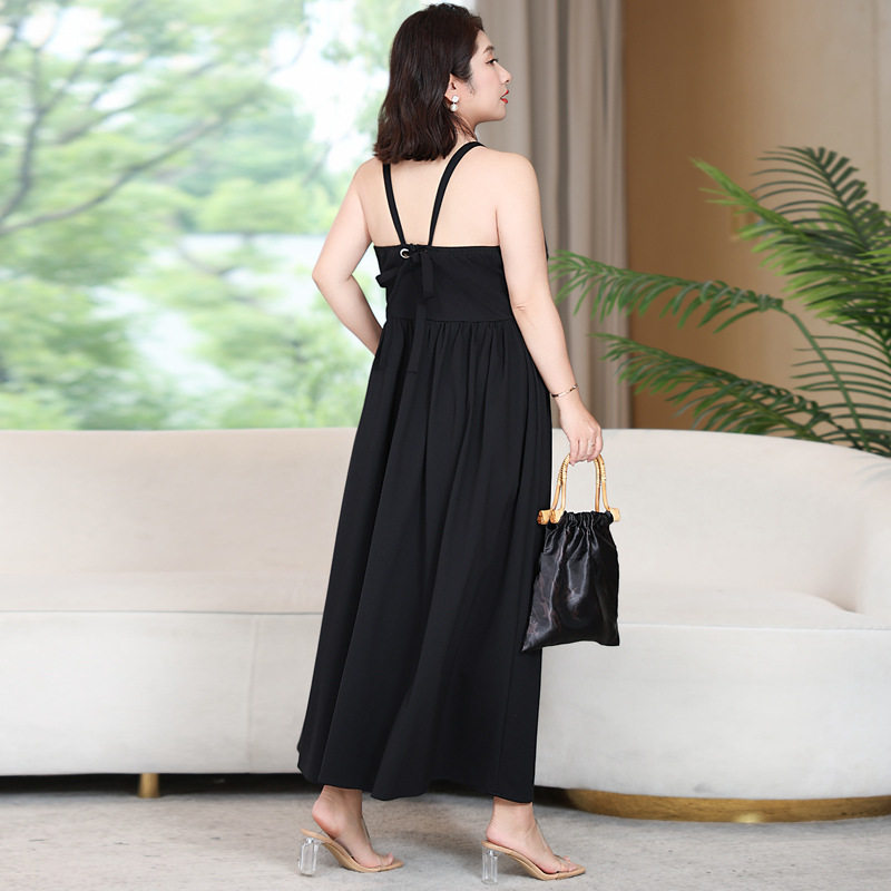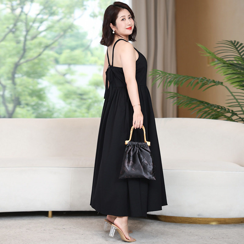 大码法式气质吊带连衣裙女200斤胖mm夏季新款遮肚子显瘦A字长裙子