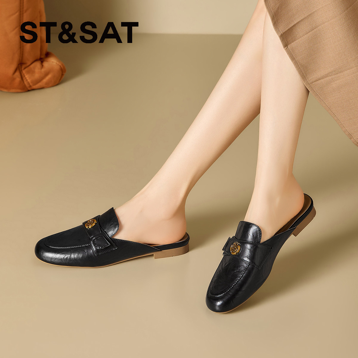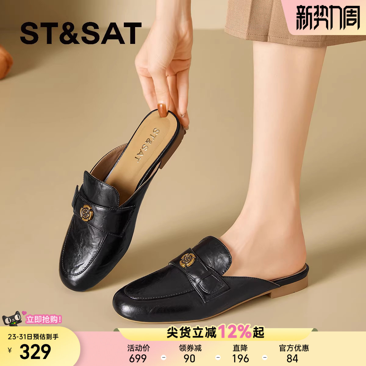 星期六复古穆勒鞋子女鞋2026新款春夏季百搭一脚蹬包头半拖小皮鞋
