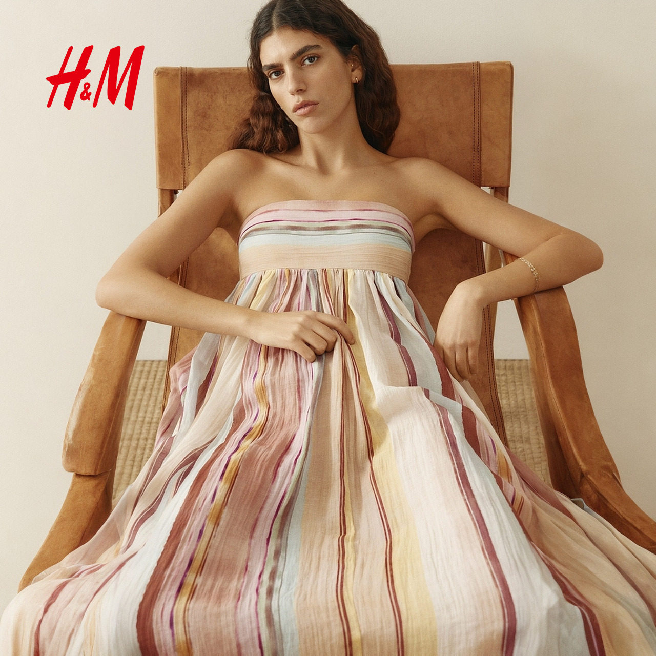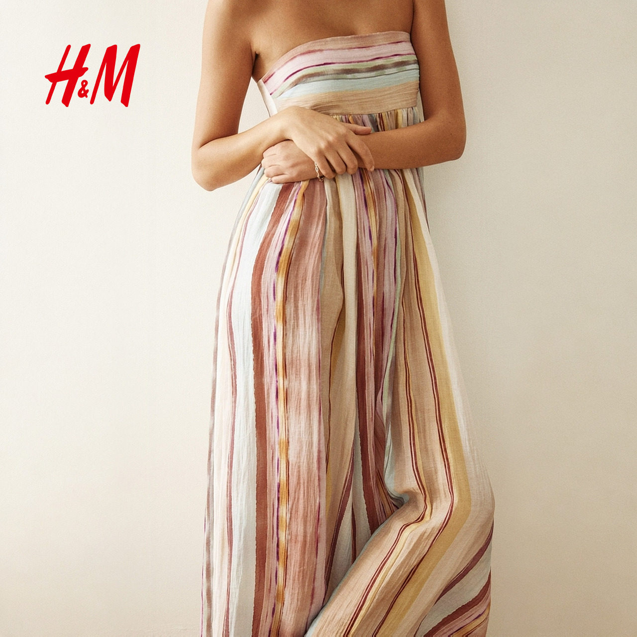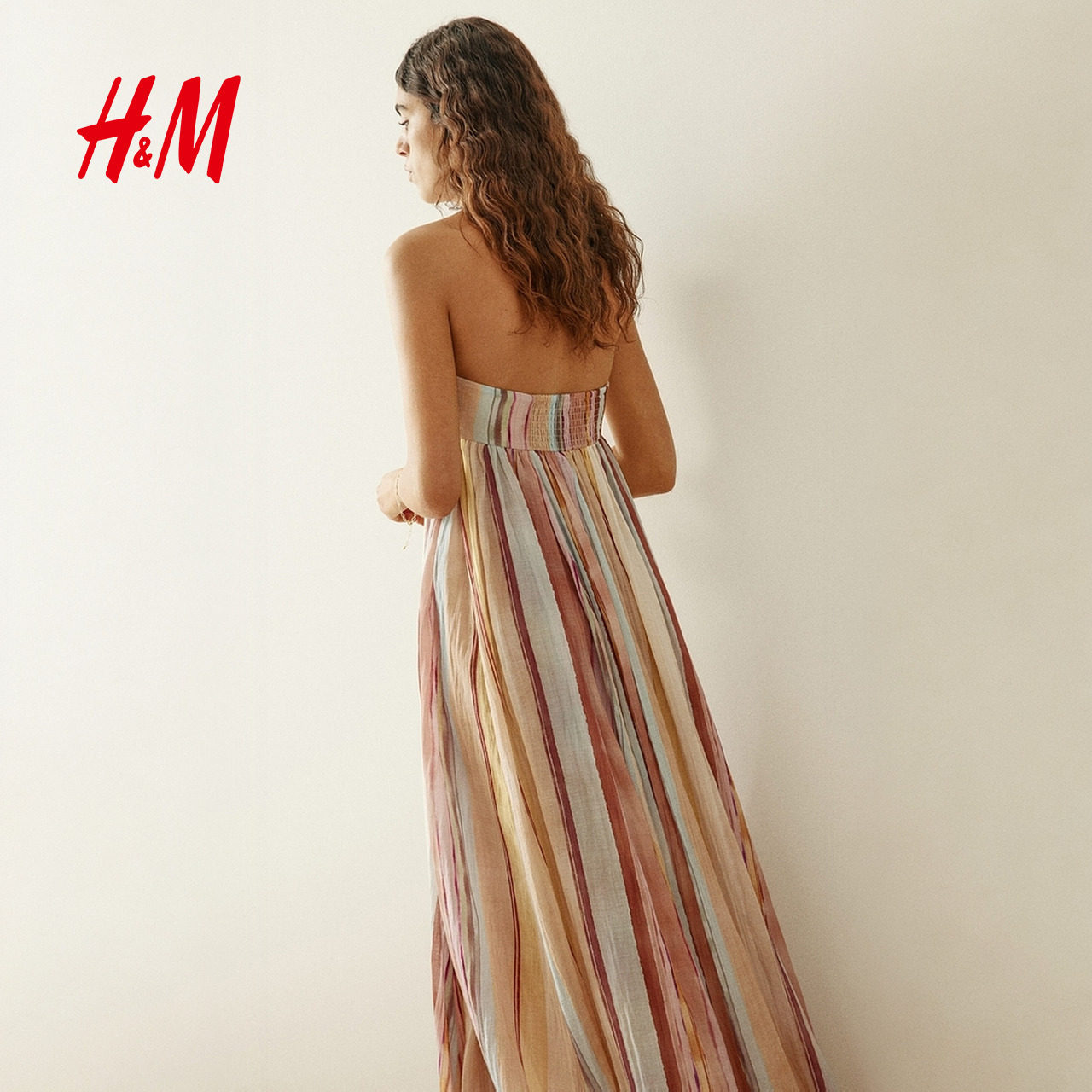 HM女装连衣裙2026春夏新款海边穿搭抹胸裙休闲条纹连身裙1321027