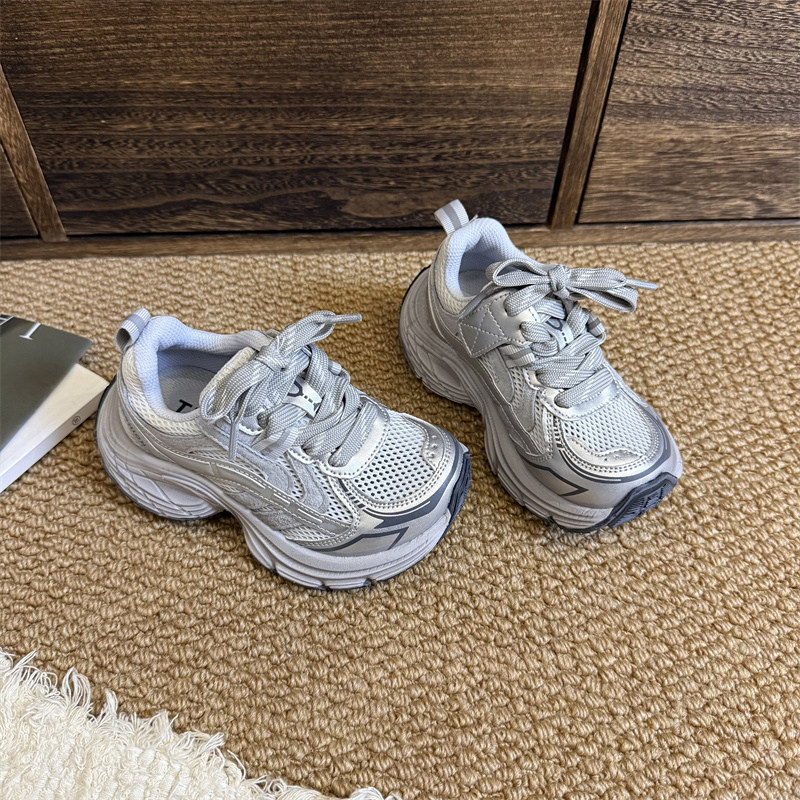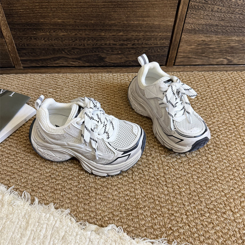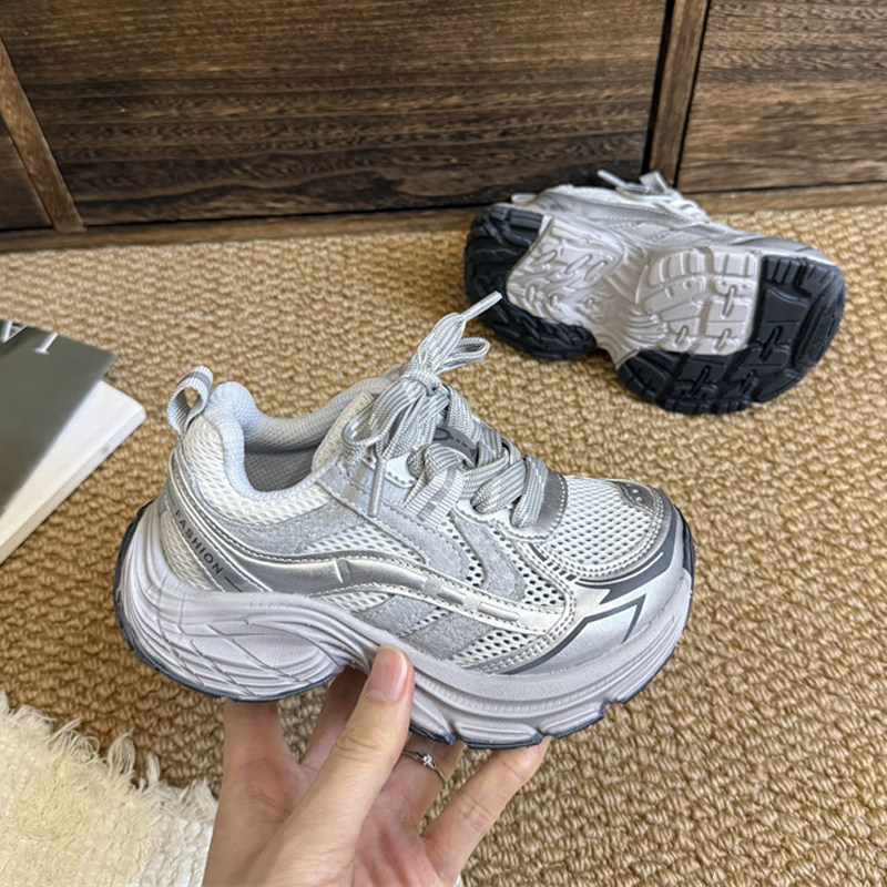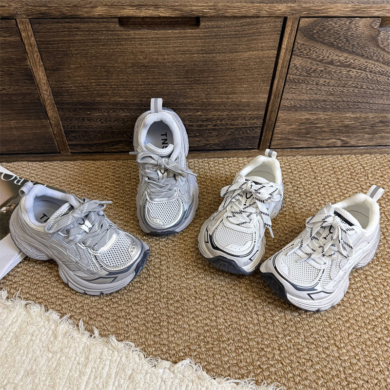 夏季薄款白色单网面老爹炸街儿童版男童女童透气运动休闲潮鞋新款